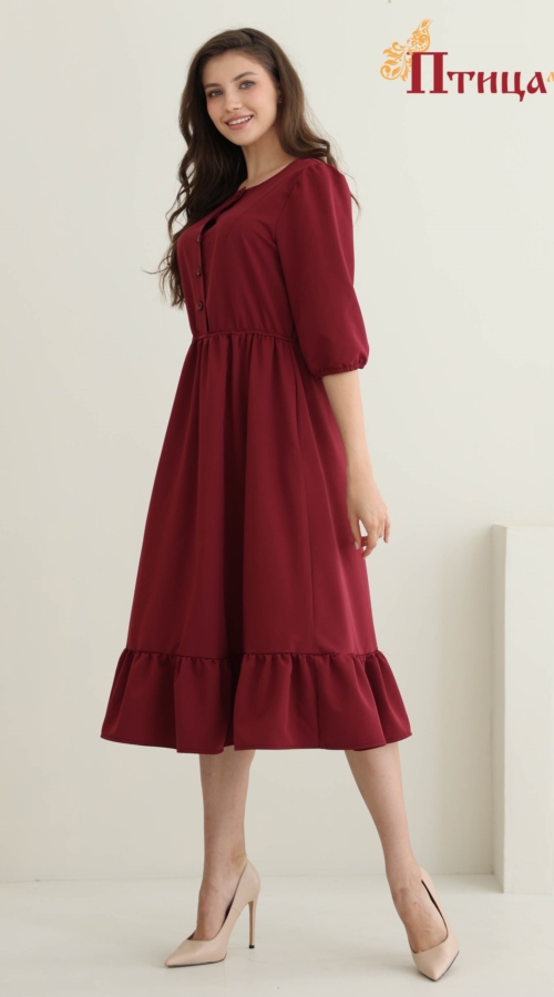 Великолепное платье выполненное с отрезной линией талии собранной на резинку, полуприлегающего силуэта. Юбка с боковыми карманами и сборкой по линии талии. Удобство и комфорт движения обеспечивает хорошее раск...