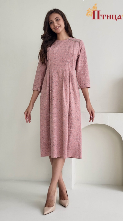 Эффектная модель — комплект, состоящий из пояса и платья, с чуть завышенной линией талии. Юбка прямая с 6 складками по передней и задней части юбки, юбка имеет хороший шаг. Модель прямого силуэта. Рукав втачной...