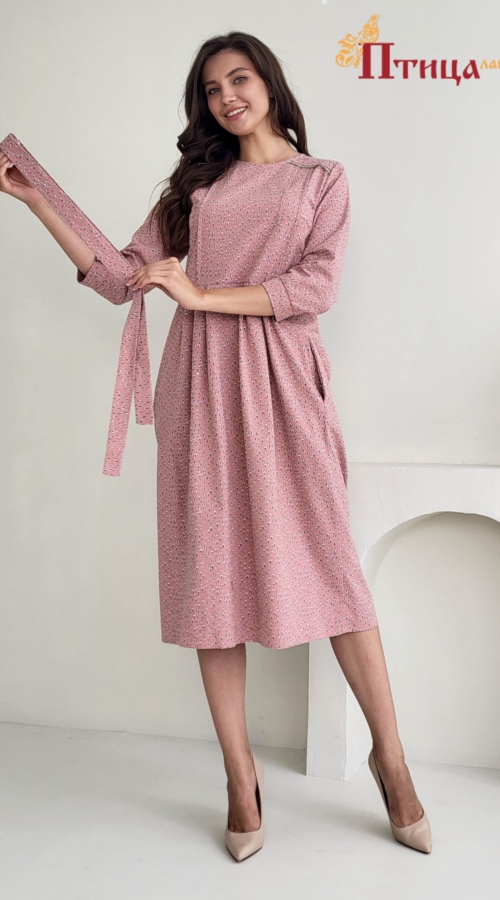 Эффектная модель — комплект, состоящий из пояса и платья, с чуть завышенной линией талии. Юбка прямая с 6 складками по передней и задней части юбки, юбка имеет хороший шаг. Модель прямого силуэта. Рукав втачной...