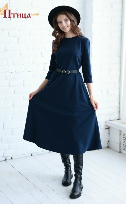Романтичный осенний образ: платье приталенного силуэта, с отрезной линией талии. Женственный силуэт достигается за счет рельефов по полочки и спинки, рукав зауженный длиной 3/4. Необыкновенной красоты юбка, с л...