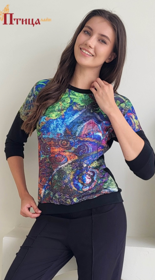 Туника с рукавом длиной 3/4 и округлый вырез, правильной длины. Ее удобно носить навыпуск с юбками и брюками. Модель имеет свободную посадку. Выполнена из плотного трикотажного полотна высокого качества. ту...