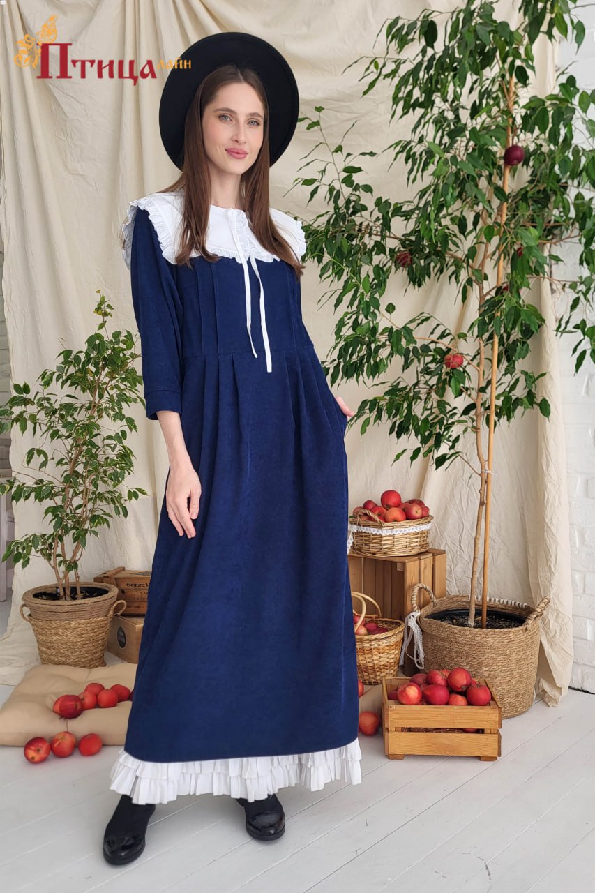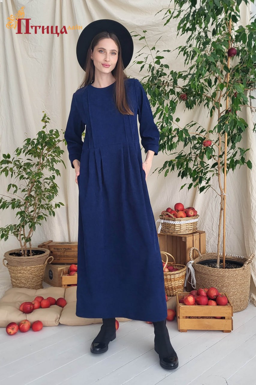Эффектная модель платья с поясом с чуть завышенной линией талии. Юбка прямая с 6 складками по передней и задней части юбки, юбка имеет хороший шаг. Модель прямого силуэта, застежка по спинке на молнию. Рукав вт...