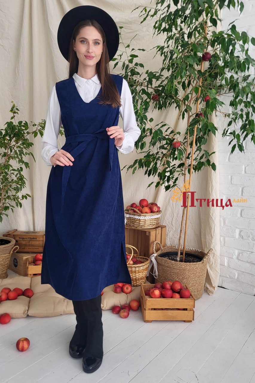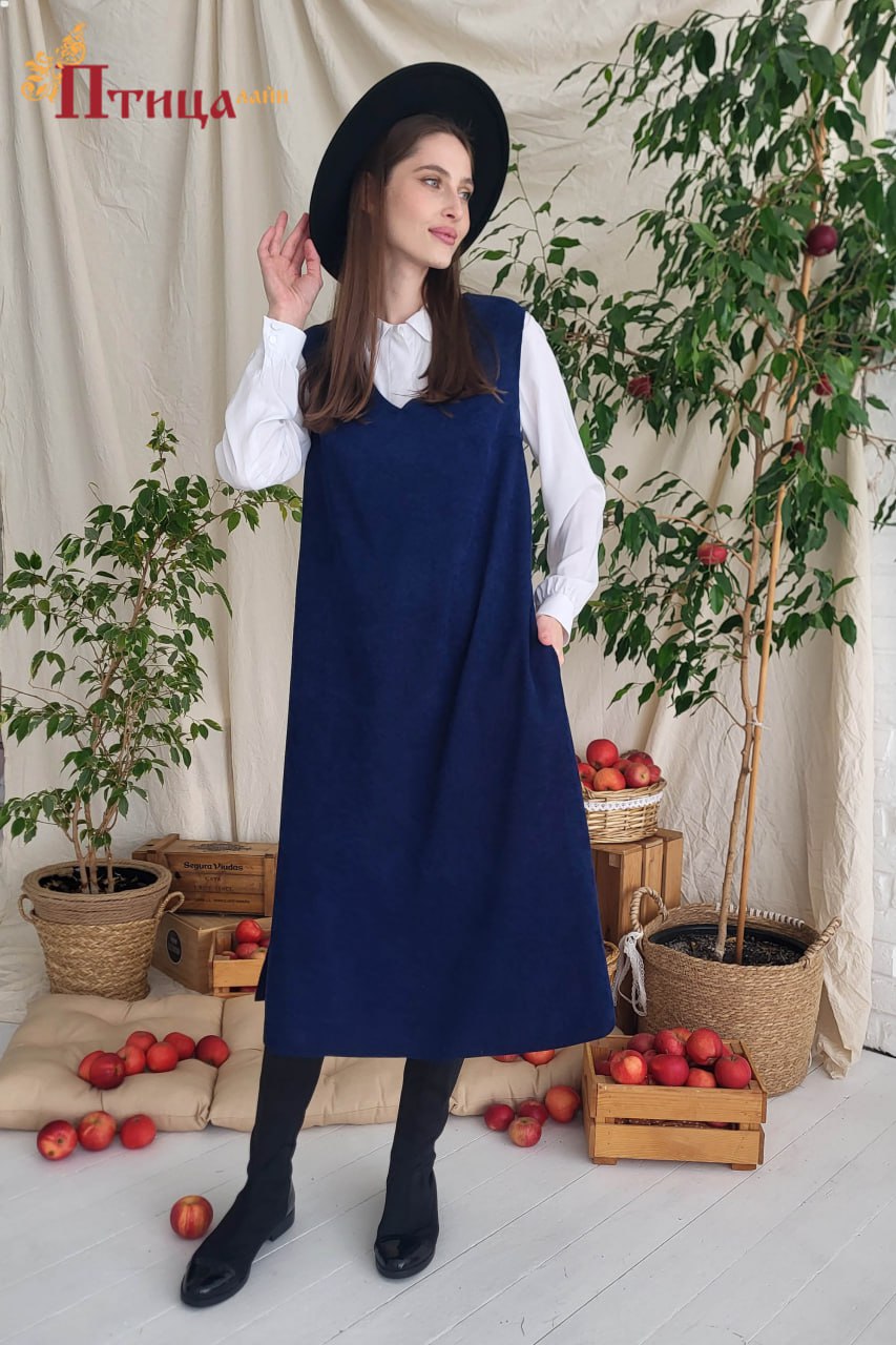 Сарафан трапециевидного силуэта — любимая модель наших клиентов. Данная модель прекрасно подходит на каждый день, комфортная пройма. Застежка по спинке на пуговку. Карманы в боковом шве. Данный сарафан прекрасн...