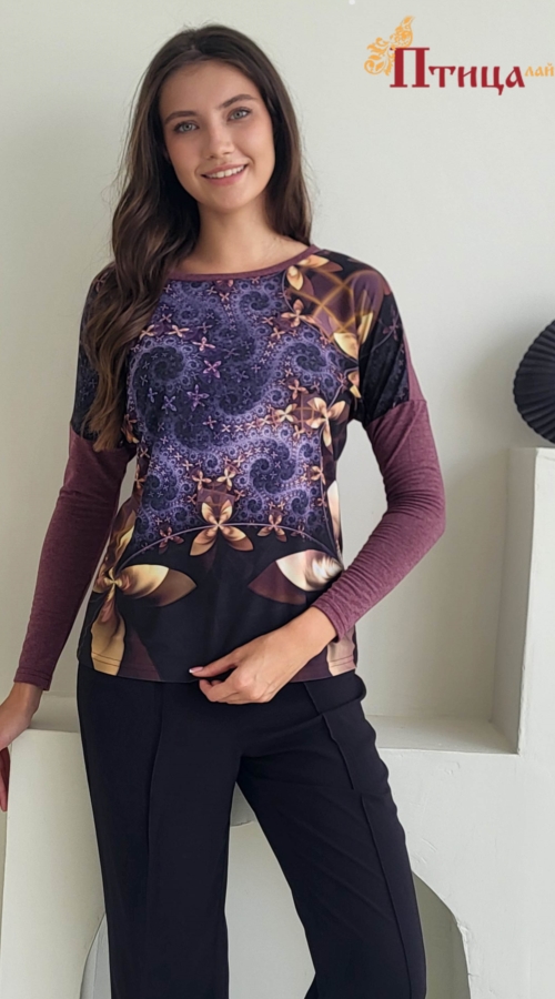Туника с длинным рукавом и округлый вырез, правильной длины. Ее удобно носить навыпуск с юбками и брюками. Модель имеет свободную посадку. Выполнена из плотного трикотажного полотна высокого качества. туник...