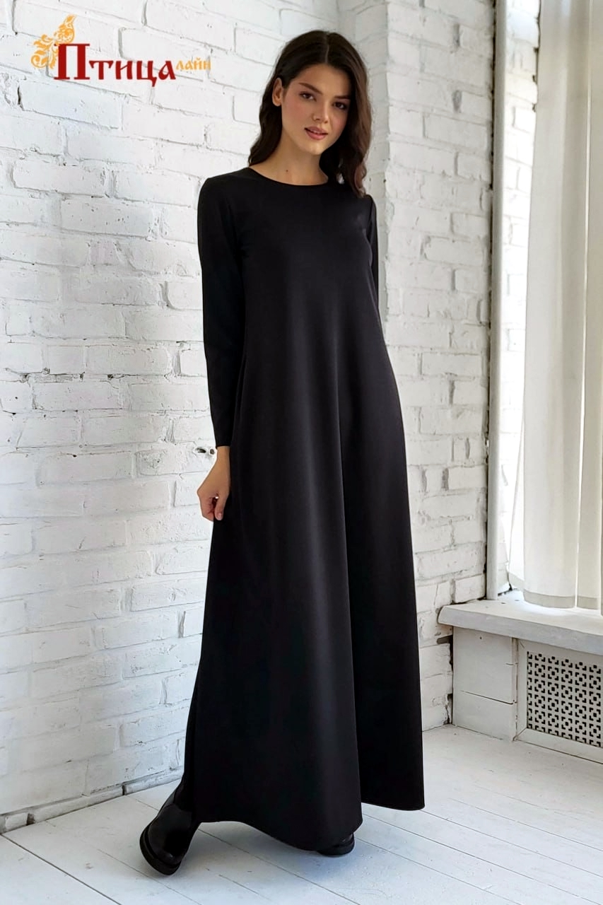 Платье трапециевидного силуэта, втачной рукав. Длинное платье, карманы в боковых швах. Элегантный силуэт, данный образ прекрасно подходит как на выход, так и на каждый день. Данная модель подходит на любой тип ...