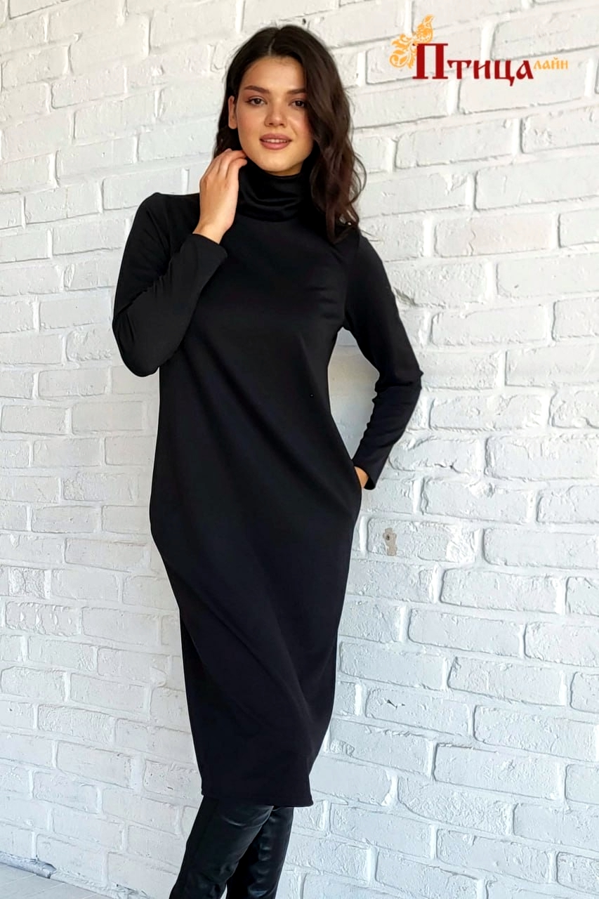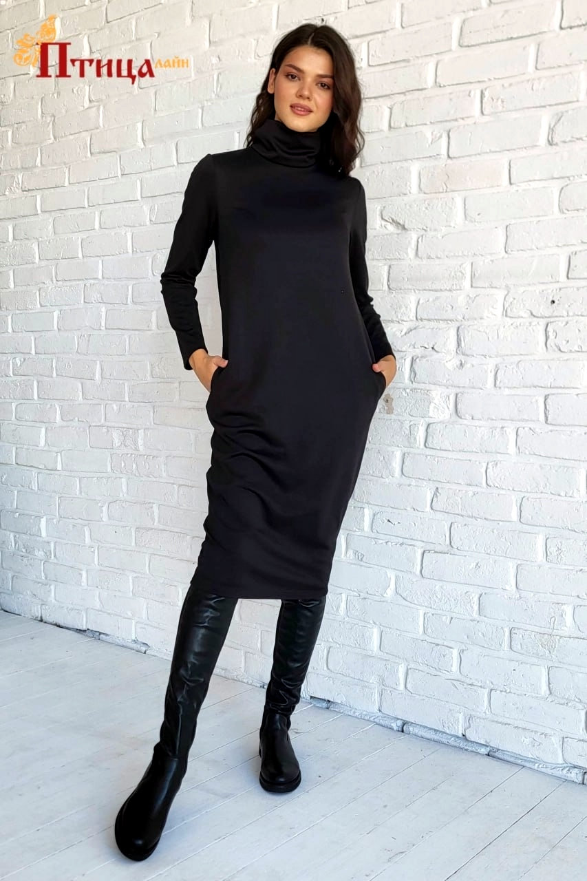 Платье прямого кроя, немного зауженное к низу, низ изделия достаточен для шага. Рукав втачной, зауженный к низу. Модель украшена 10 см стойкой, что позволяет носить ее как полностью поднятой, так и согнутой ...