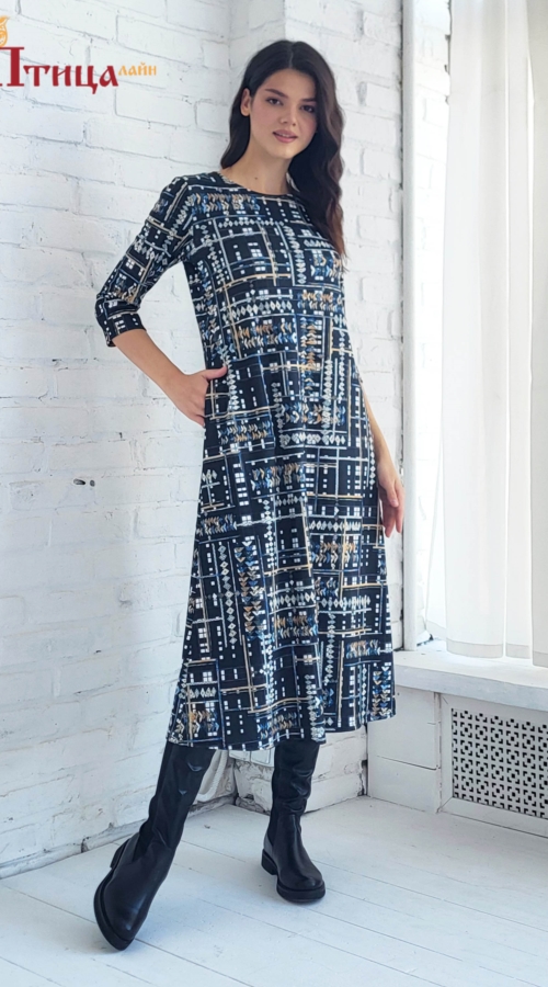Платье трапециевидного силуэта, втачной рукав. Длина платья прекрасно смотрится как с обувью на низком каблуке, так и на высоком, карманы в боковых швах всегда удобны при повседневной носке. Элегантный силуэт,...