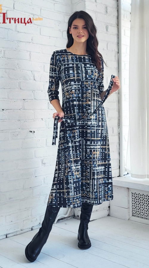 Платье трапециевидного силуэта, втачной рукав. Длина платья прекрасно смотрится как с обувью на низком каблуке, так и на высоком, карманы в боковых швах всегда удобны при повседневной носке. Элегантный силуэт,...