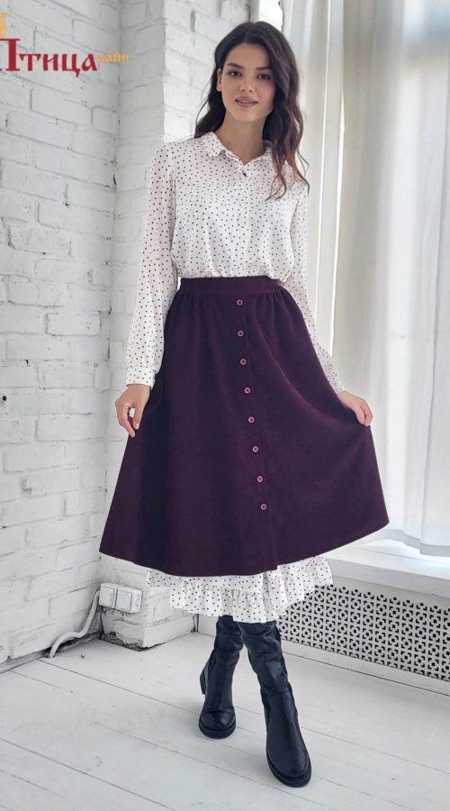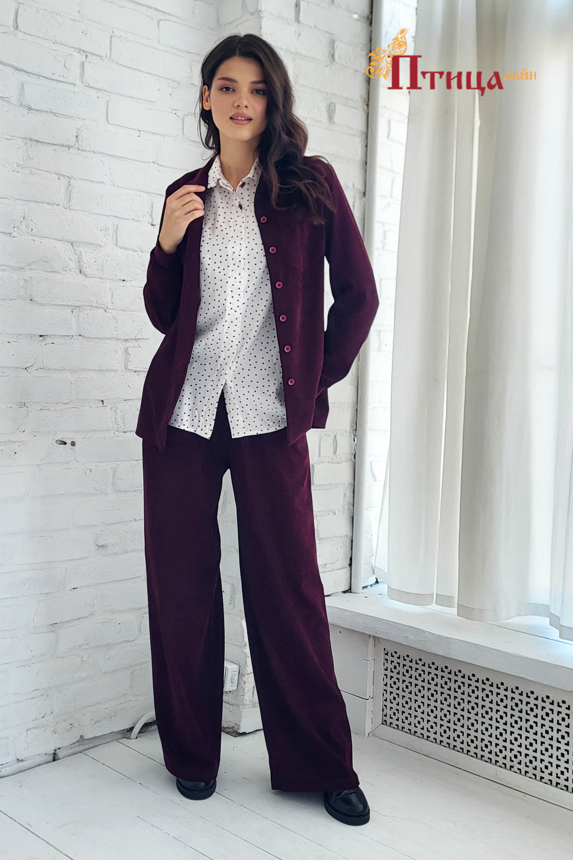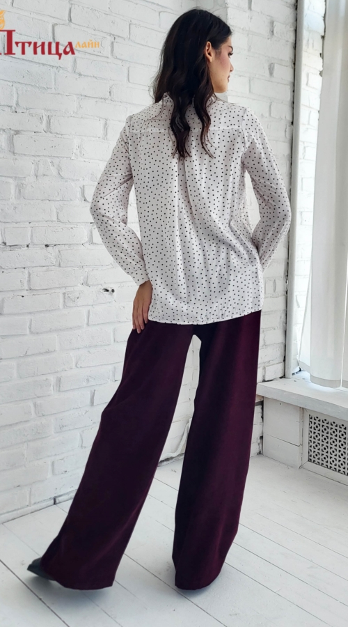 Блуза выполненная из штапеля, трапециевидного силуэта. Рукав втачной прямой, собранный на манжету. По центру полочки супатная застежка на пуговицы. По спинке кокетка, встречная глубокая складка по середине спин...