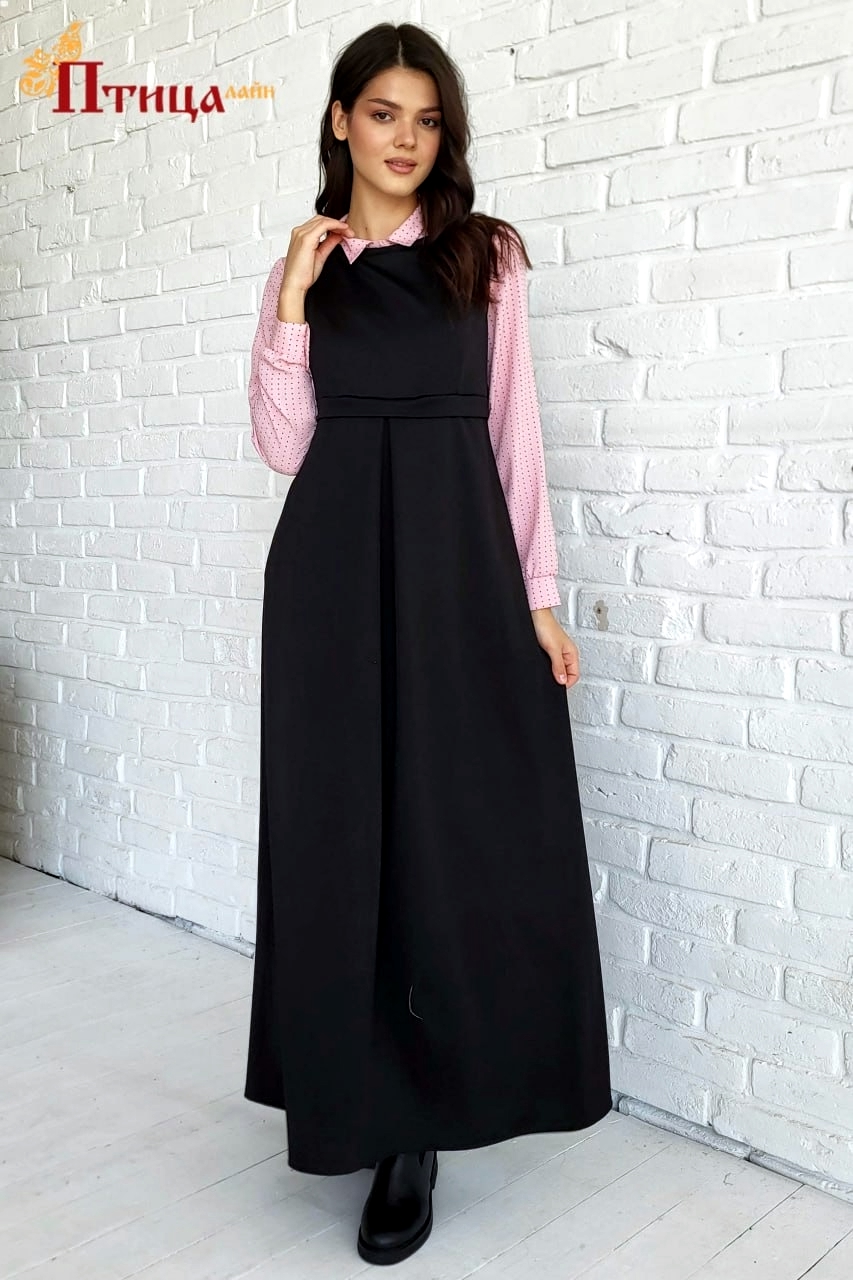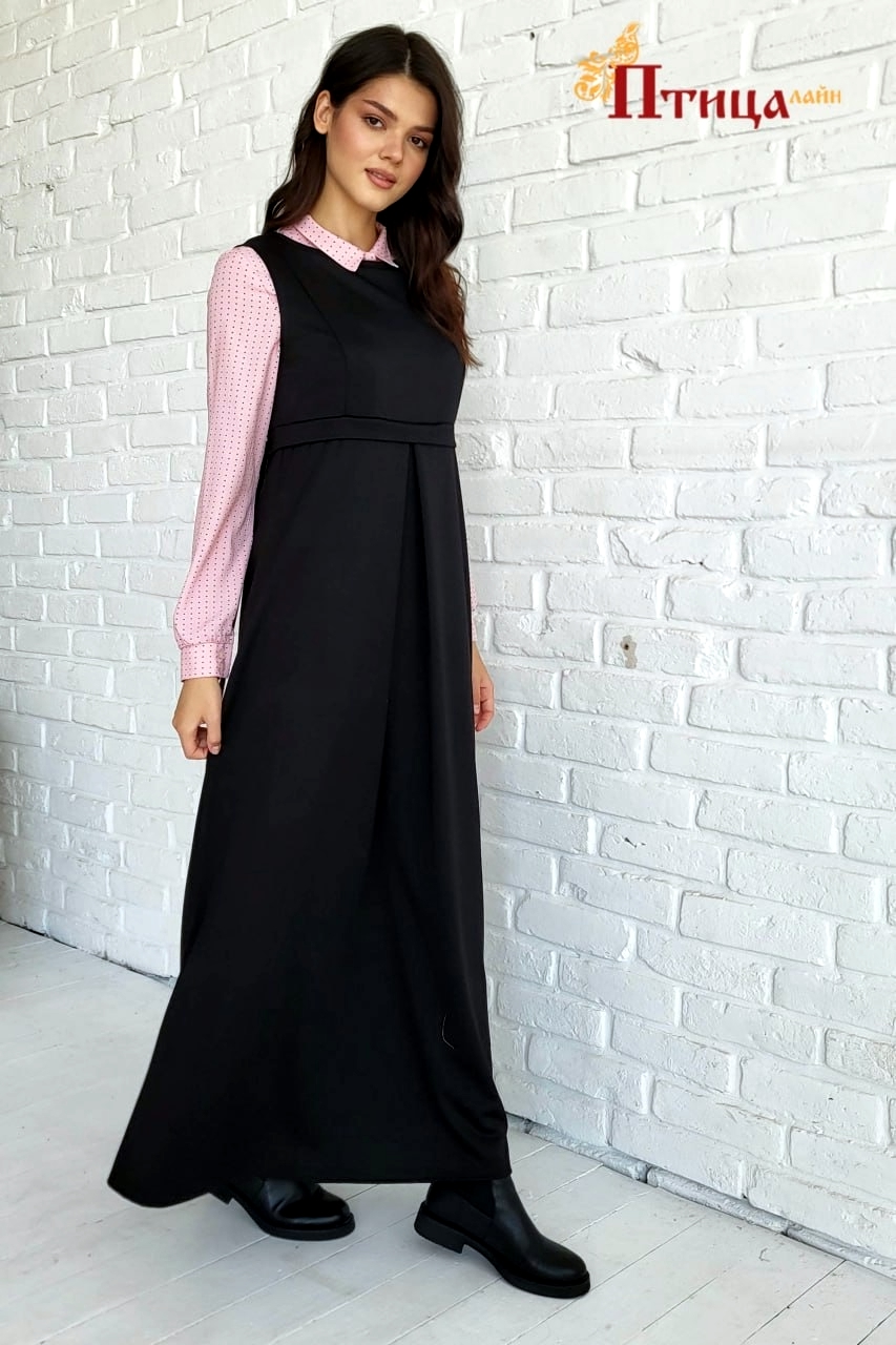 Женственный сарафан полуприлегающего силуэта с отрезной линией талии. Завышенная линия талии, подчеркнутая поясочком, а также юбка, расклешенная к низу, с встречной складкой, создает женственный романтичный обр...