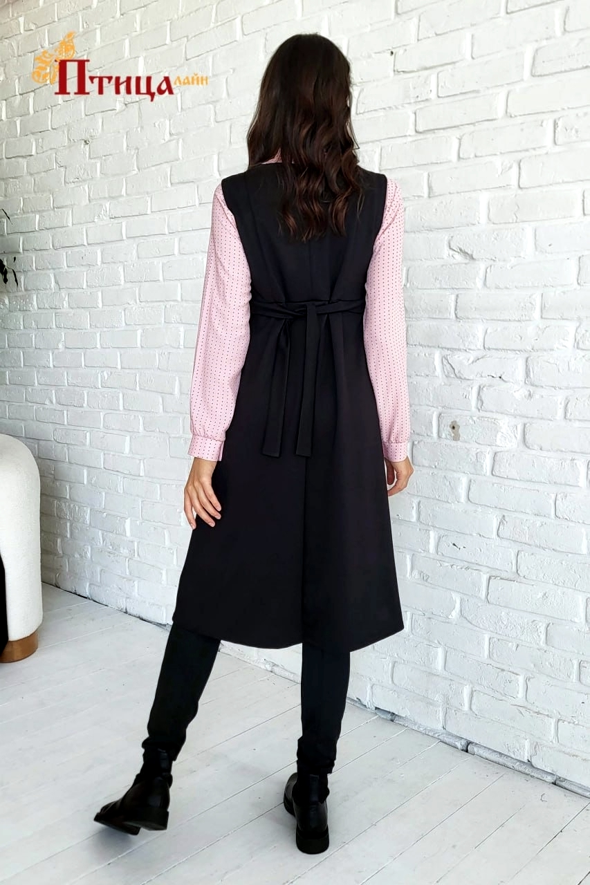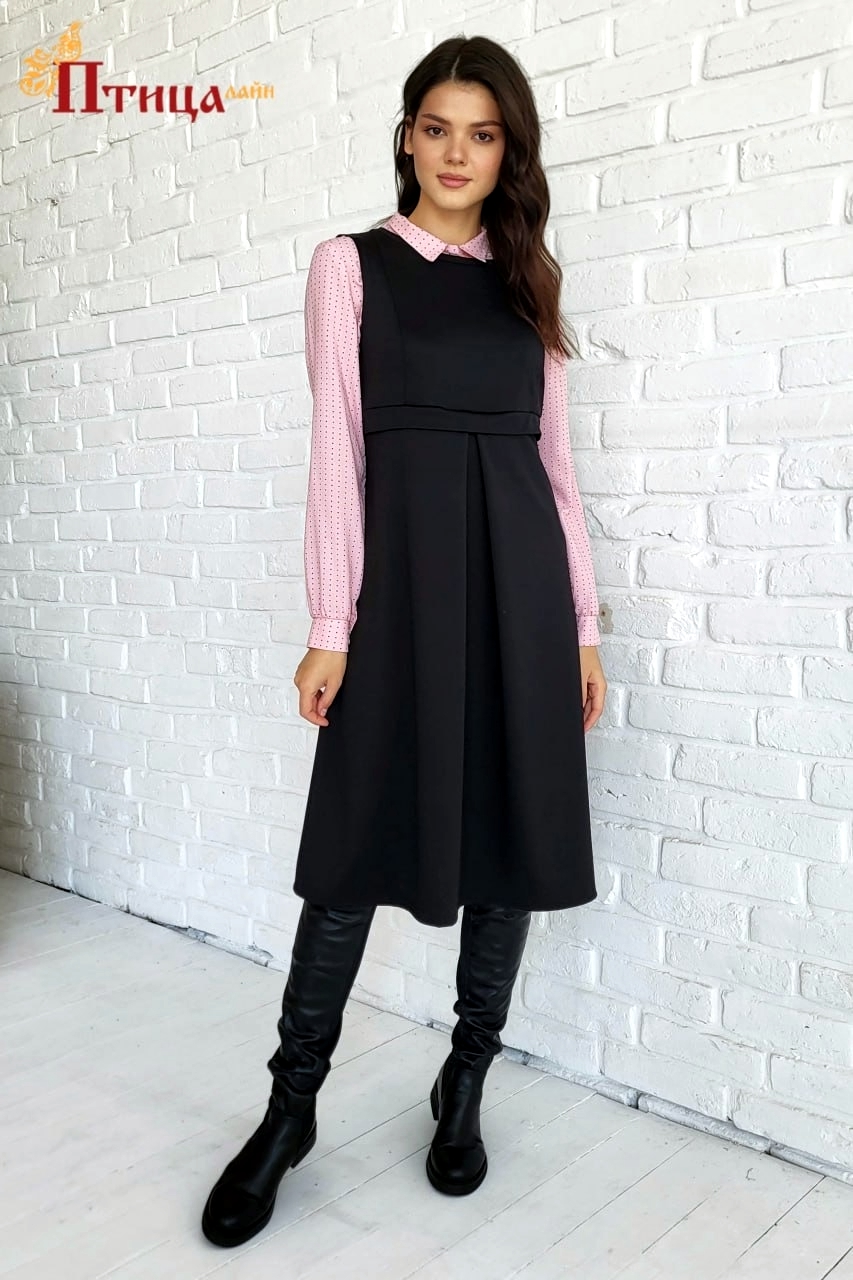 Теплый трикотажный сарафан за колено с завышенной линией талии. Линия талии подчеркнута поясочком, юбка со встречной складкой создает женственный романтичный образ, позволяет носить данную модель каждой. Поясо...