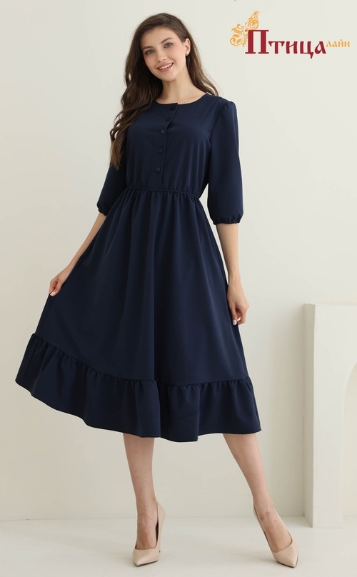 Великолепное платье выполненное с отрезной линией талии собранной на резинку, полуприлегающего силуэта. Юбка с боковыми карманами и сборкой по линии талии. Удобство и комфорт движения обеспечивает хорошее раск...