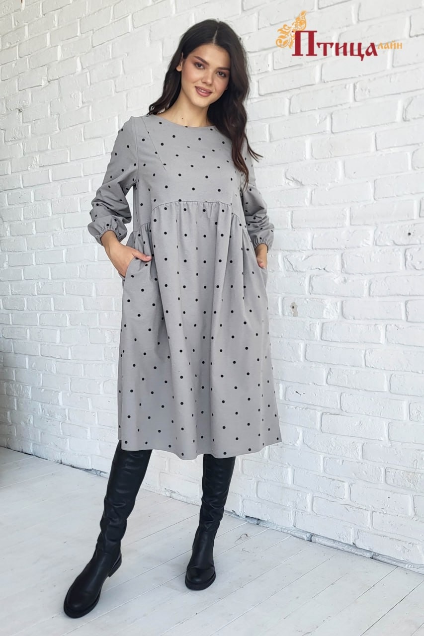 Платье женское отрезное с завышенной линией талии, линия талии по полочке находится под грудью, а по спинке на уровне талии, переход плавный и очень эффектный. Юбка прямая с карманами в боковом шве, равномерная...