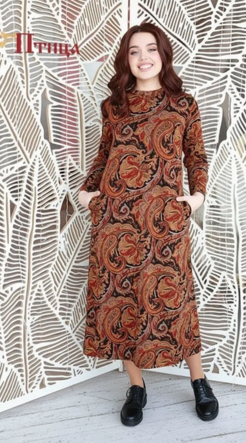 Платье трапециевидного силуэта с втачным рукавом . Платье длинной миди , карманы в боковых швов. Современный, удобный образ прекрасно подходит для прогулок в прохладный период. Данная модель подходит на любой ...