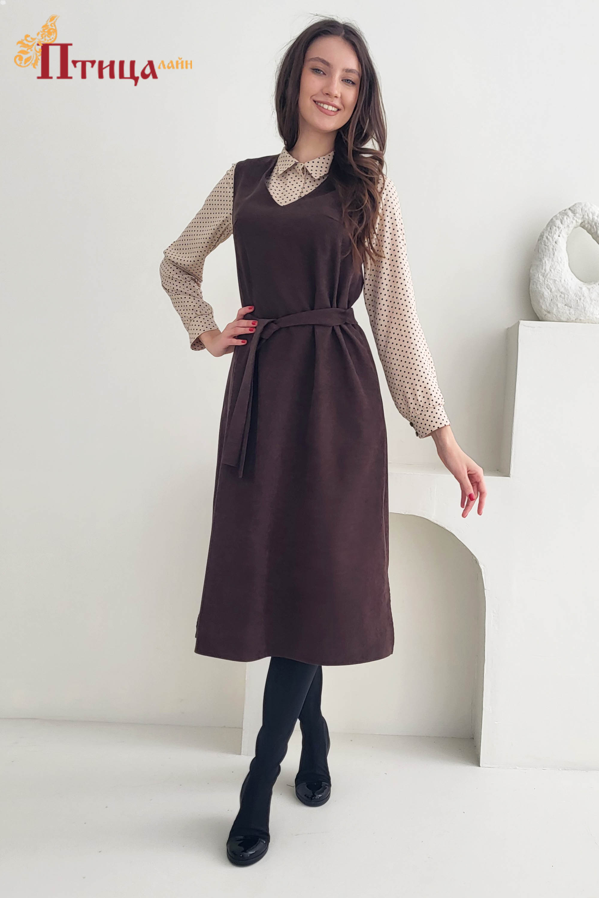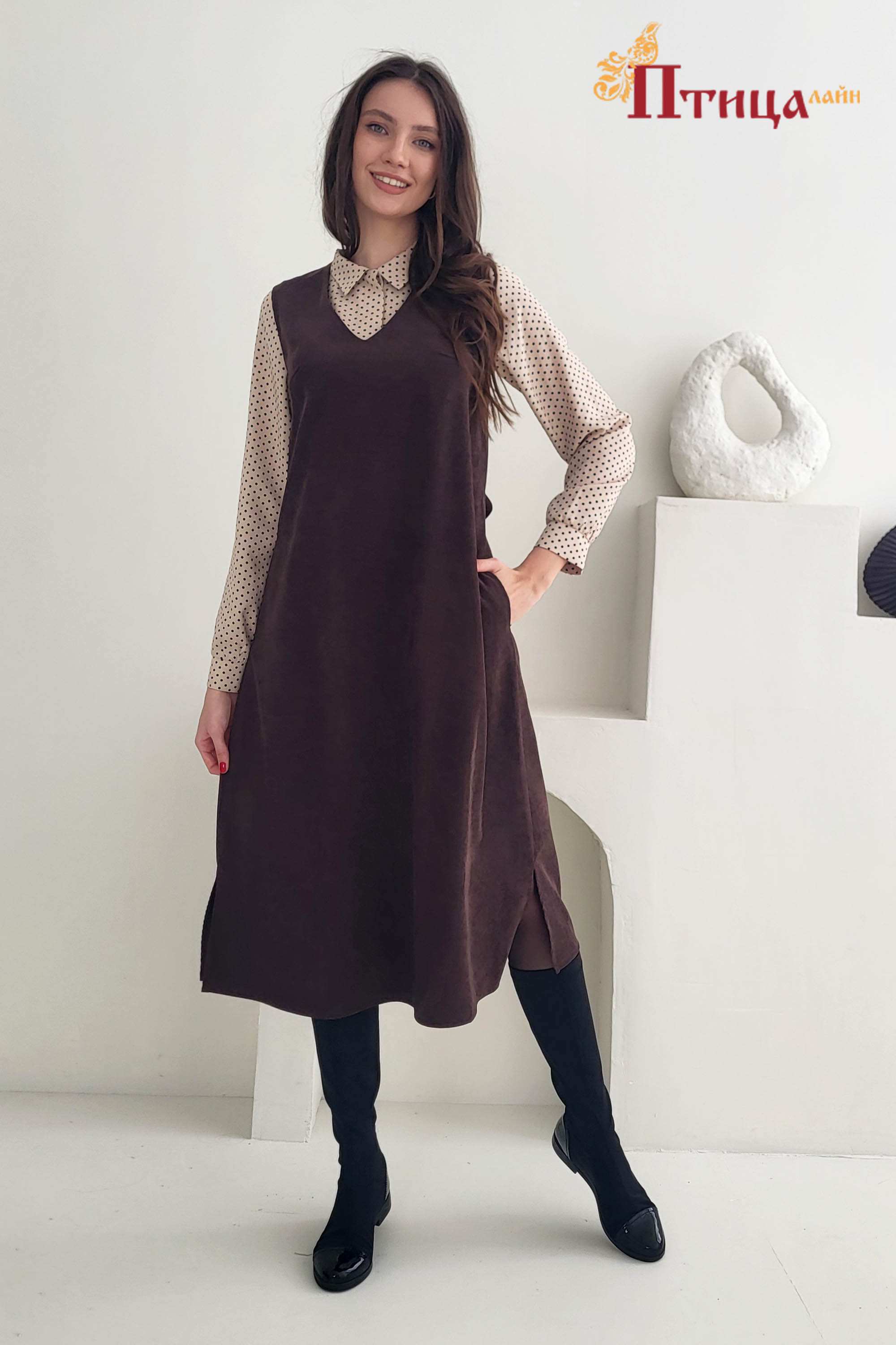 Сарафан трапециевидного силуэта — любимая модель наших клиентов. Данная модель прекрасно подходит на каждый день, комфортная пройма. Застежка по спинке на пуговку. Карманы в боковом шве. Данный сарафан прекрасн...
