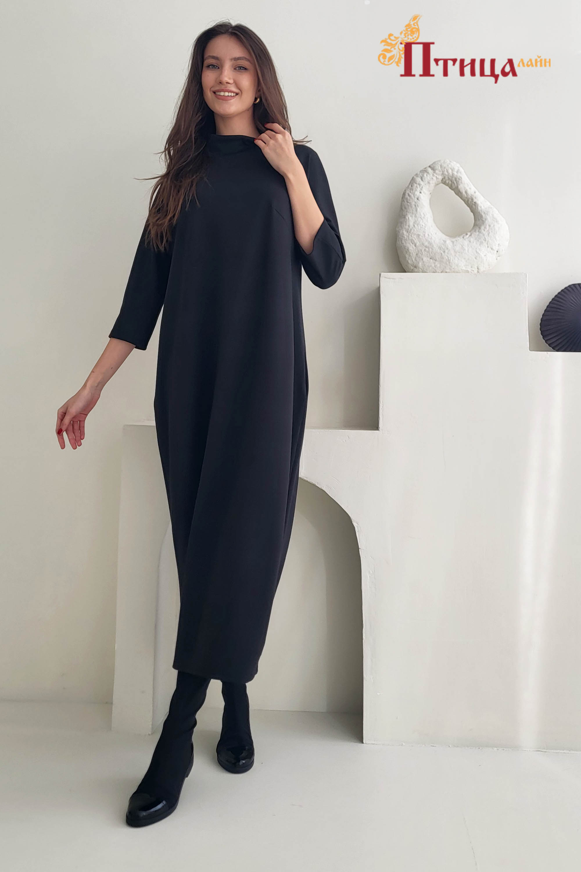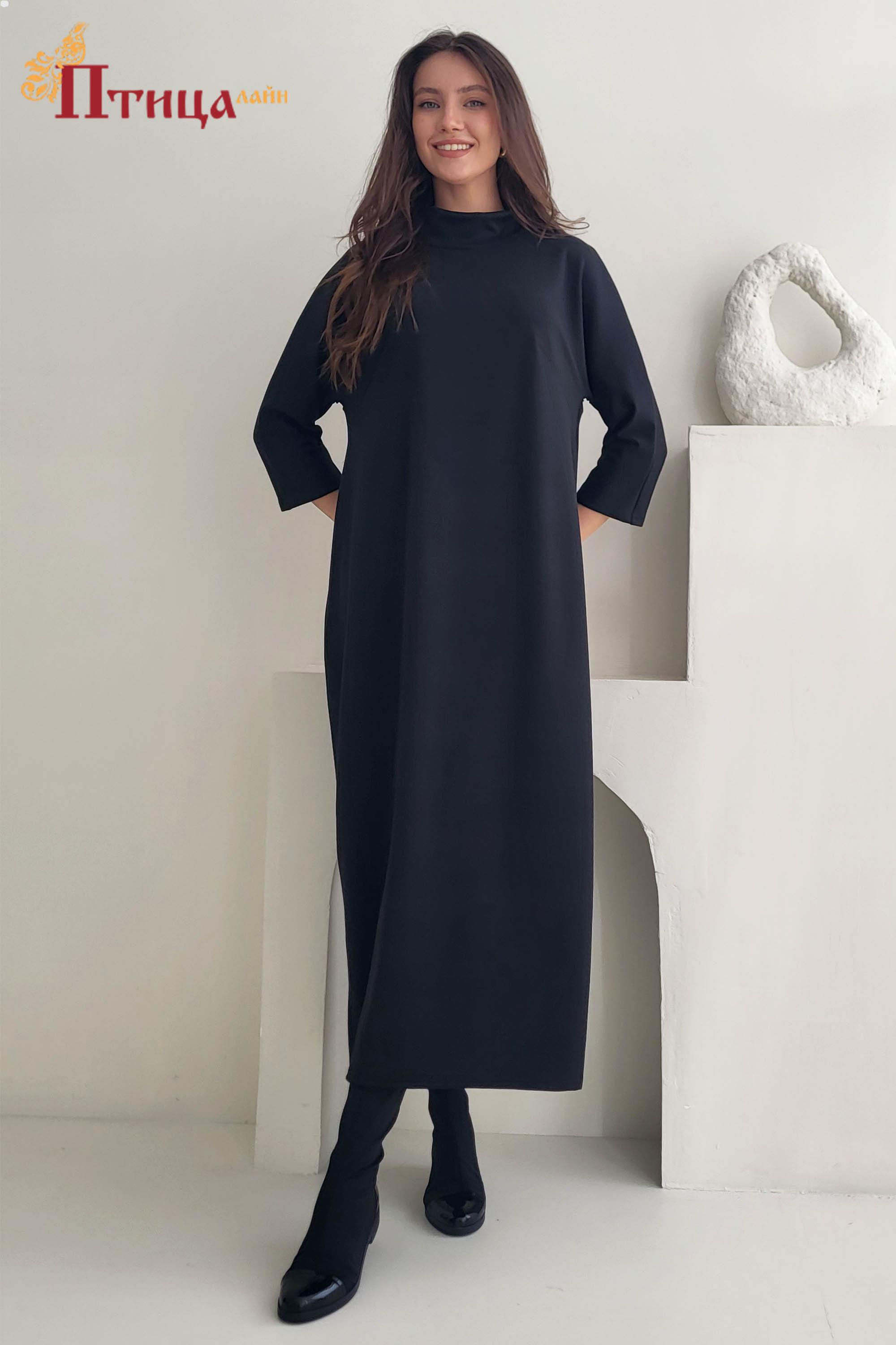 Платье прямого силуэта с закругленными боками, с цельнокроенным рукавом, эффектно создают контраст мягкого низа и нешироких рукавов. Платье выполнено из плотного трикотажа, карманы в боковых швах очень удобны в...