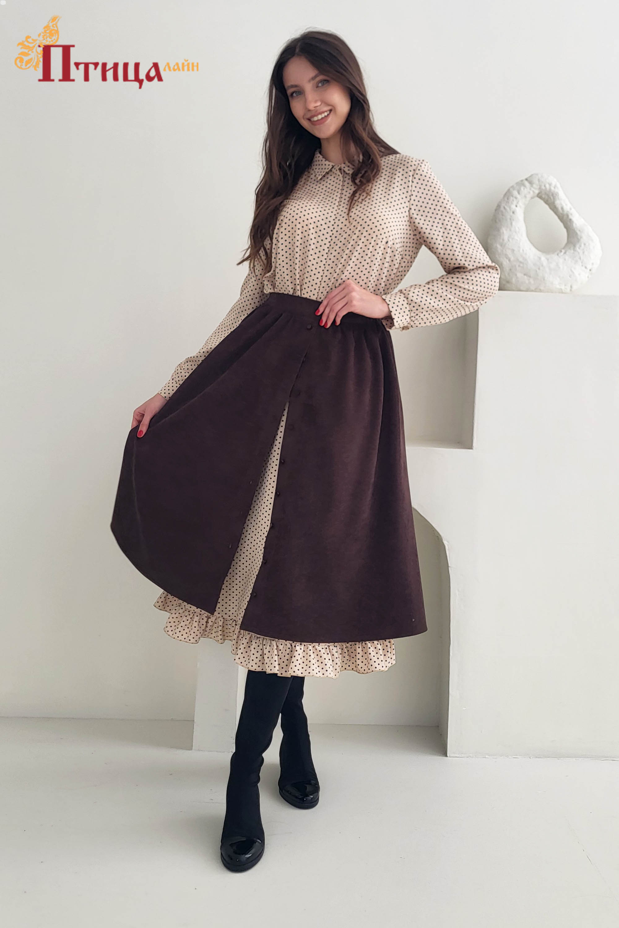 Юбка с центральной застежкой — must have нового сезона. Юбка женская расклешенная с карманами в боковом шве прекрасно подходит для образа на каждый день. Юбку сочетают с джинсовыми вещами, подойдет к классическ...