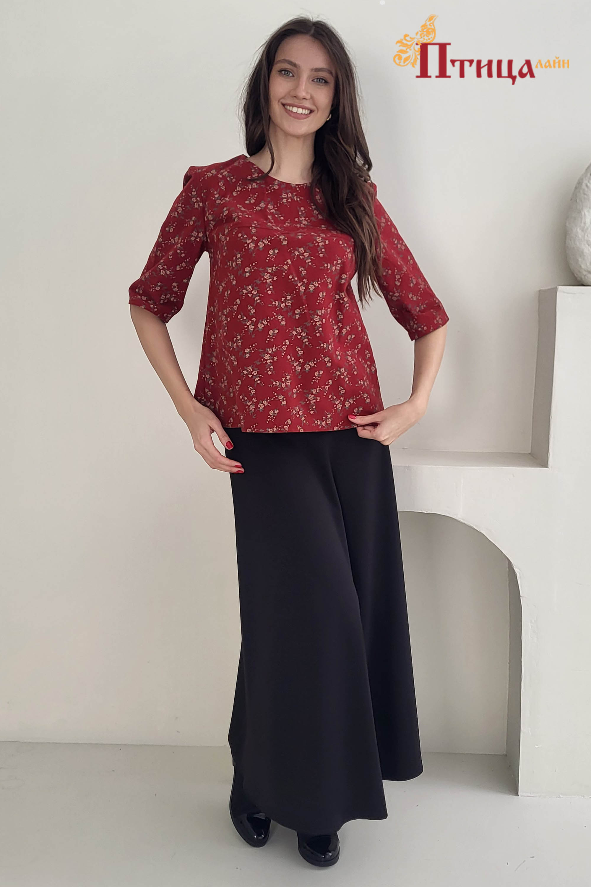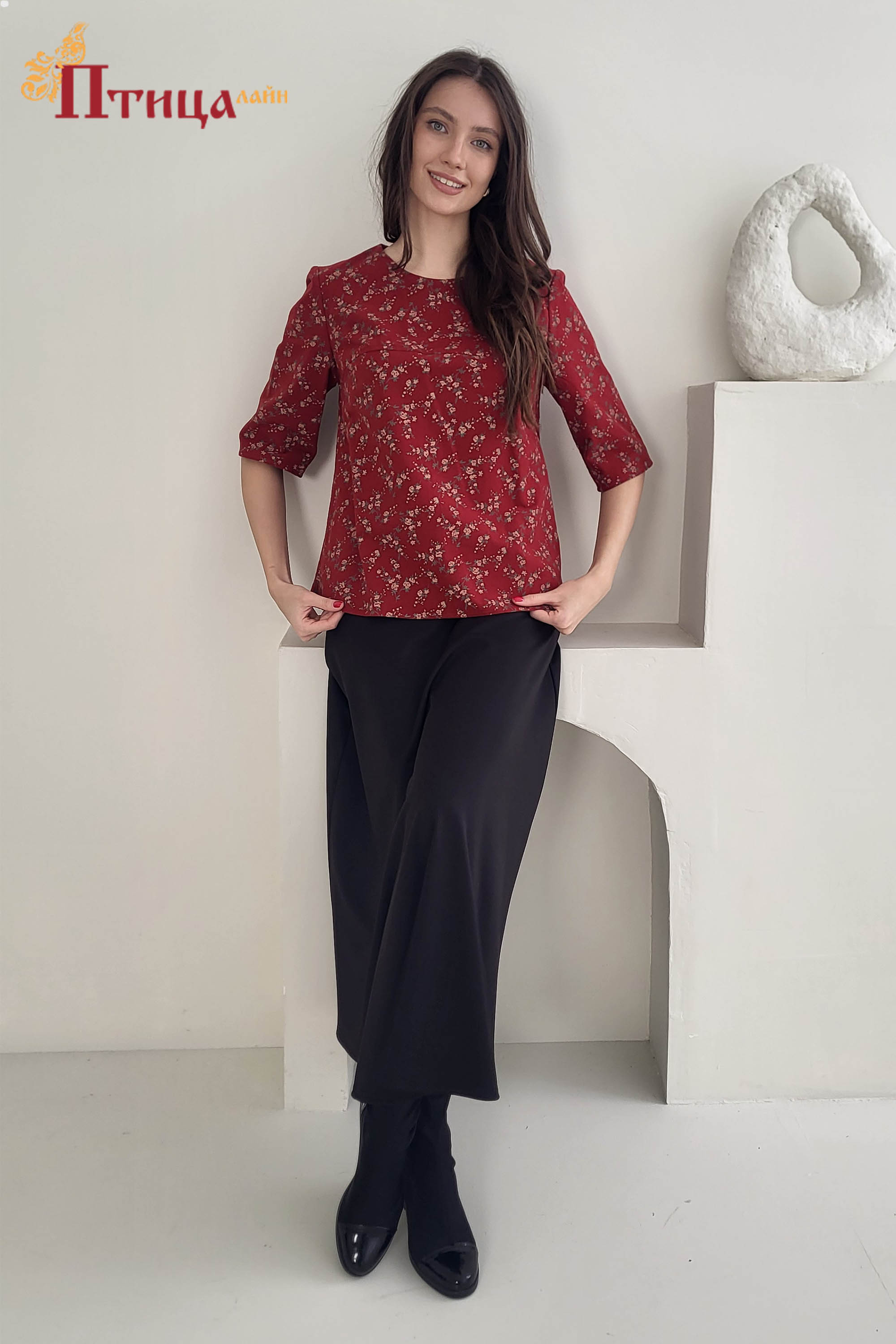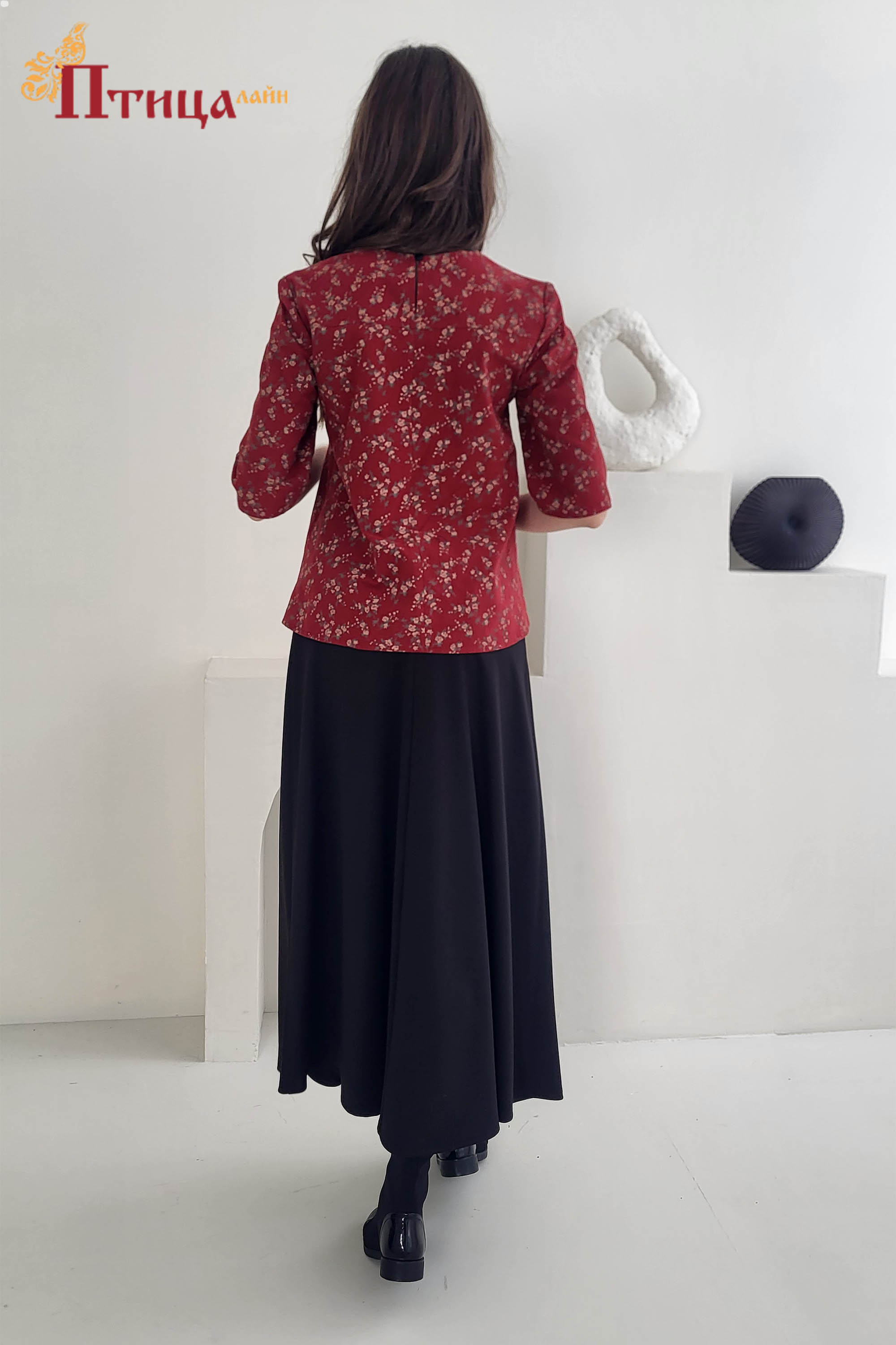 Туника трапециевидного силуэта идеальная для каждого типа фигуры. Рукав втачной, длинна рукава 3/4, прямой не зауженный. Застежка по спинке на пуговицу. Данная туника прекрасно подходит на выход и на каждый ден...