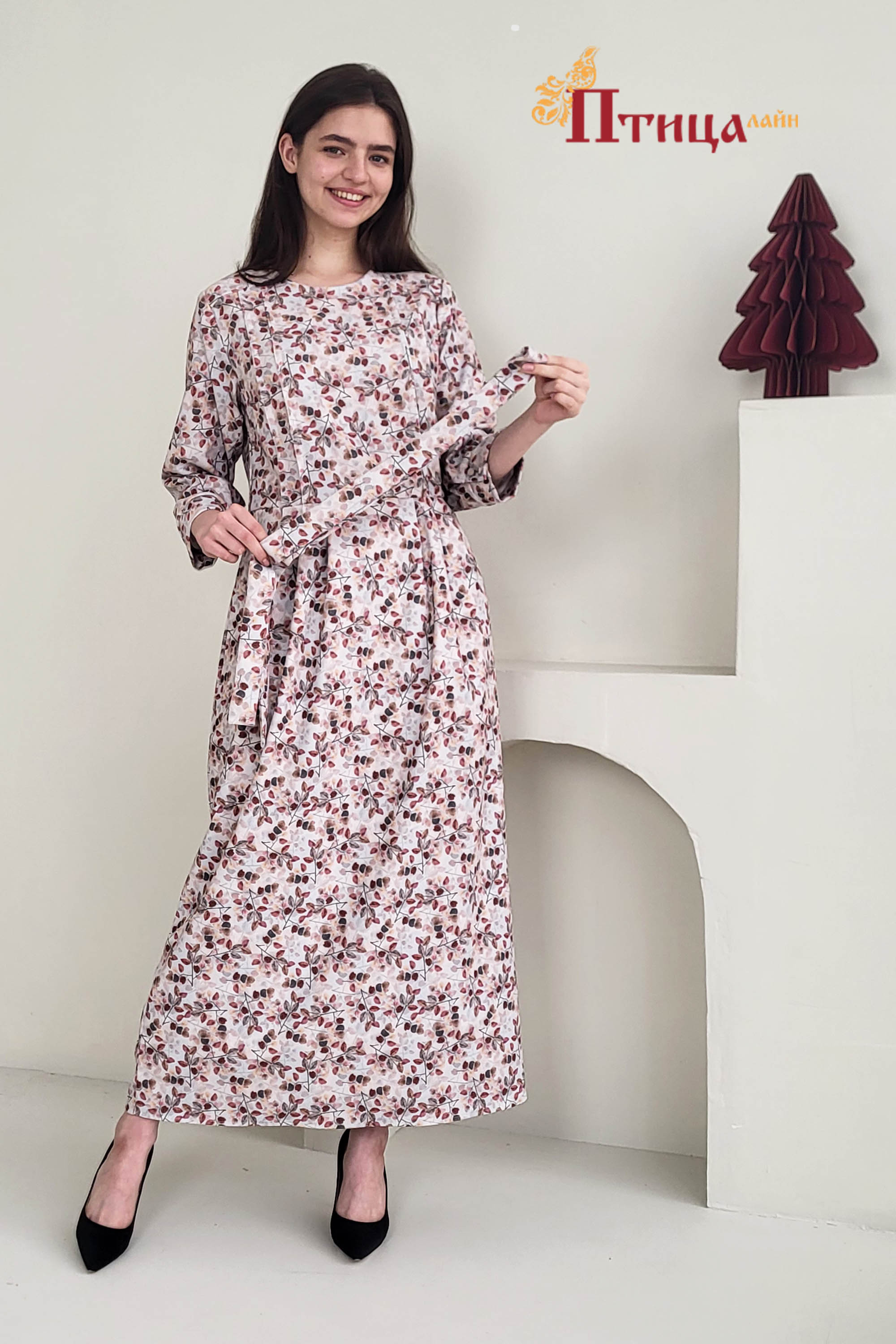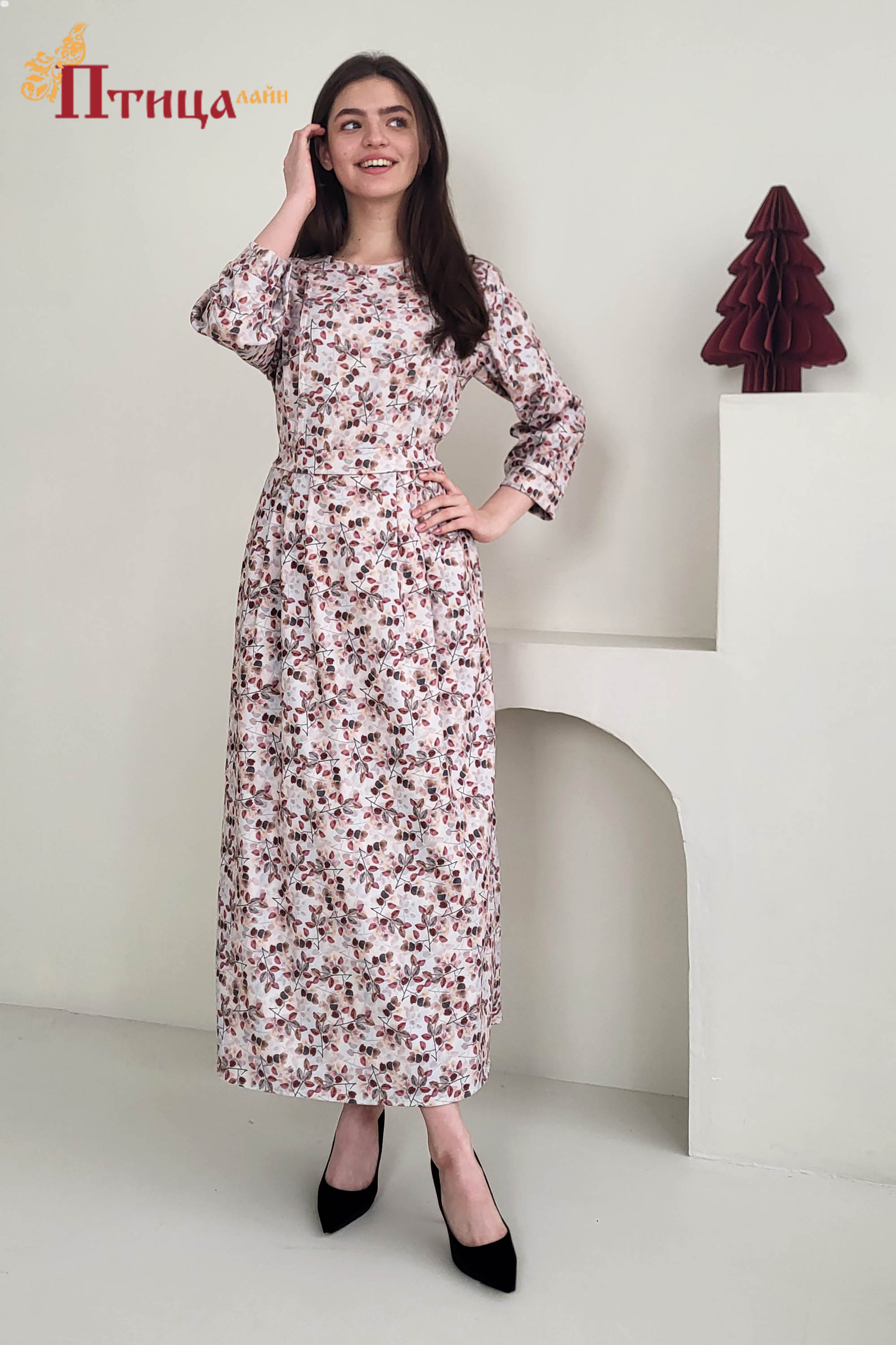 Эффектная модель платья с поясом с чуть завышенной линией талии. Юбка прямая с 6 складками по передней и задней части юбки, юбка имеет хороший шаг. Модель прямого силуэта, застежка по спинке на молнию. Рукав вт...