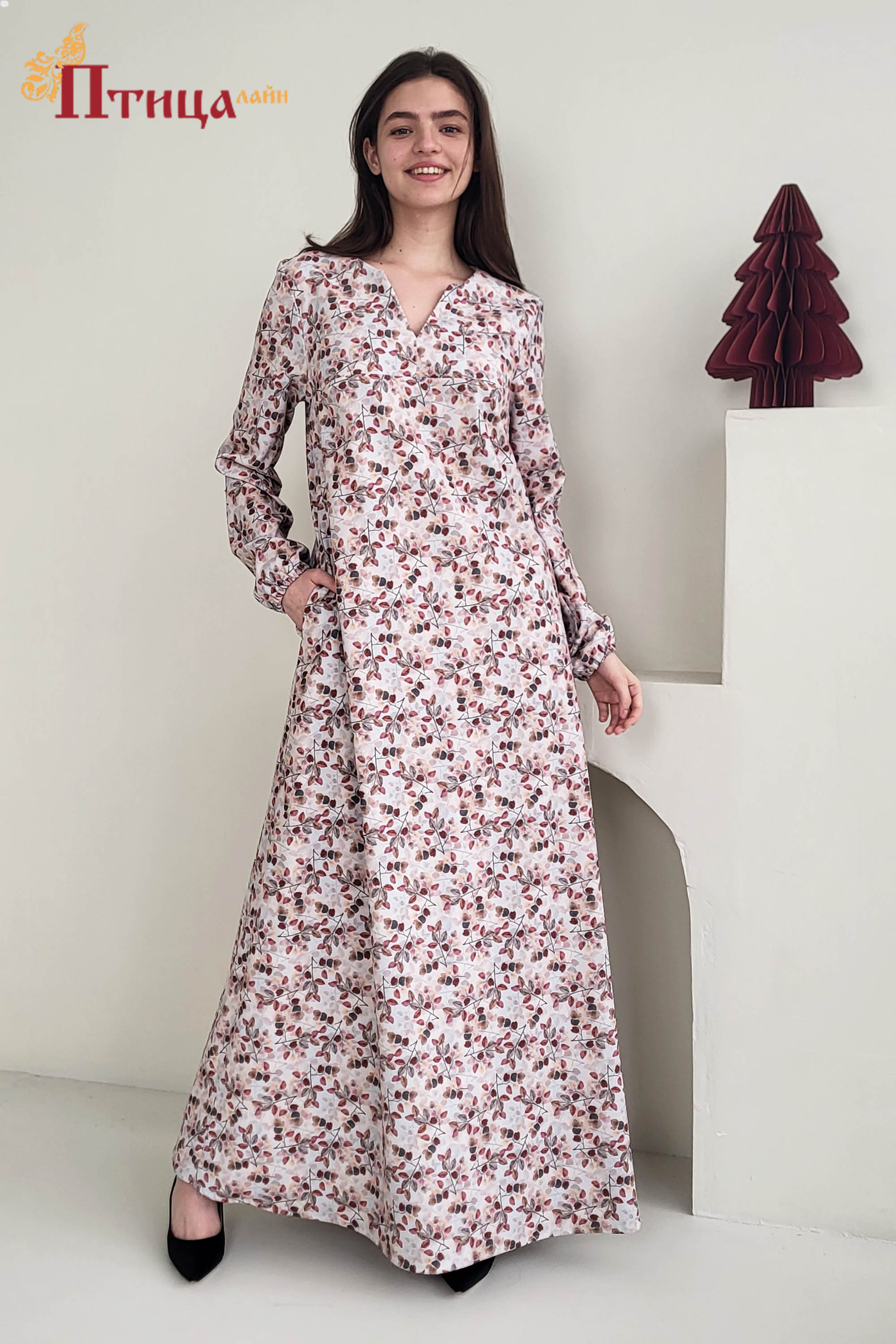 Платье трапециевидного силуэта с V-образным вырезом, с боковыми карманами и богатым воланом по низу юбки, динамичный, завораживающий образ. Втачной, длинный рукав, прямой, не зауженный, на резиночке, позволяет ...