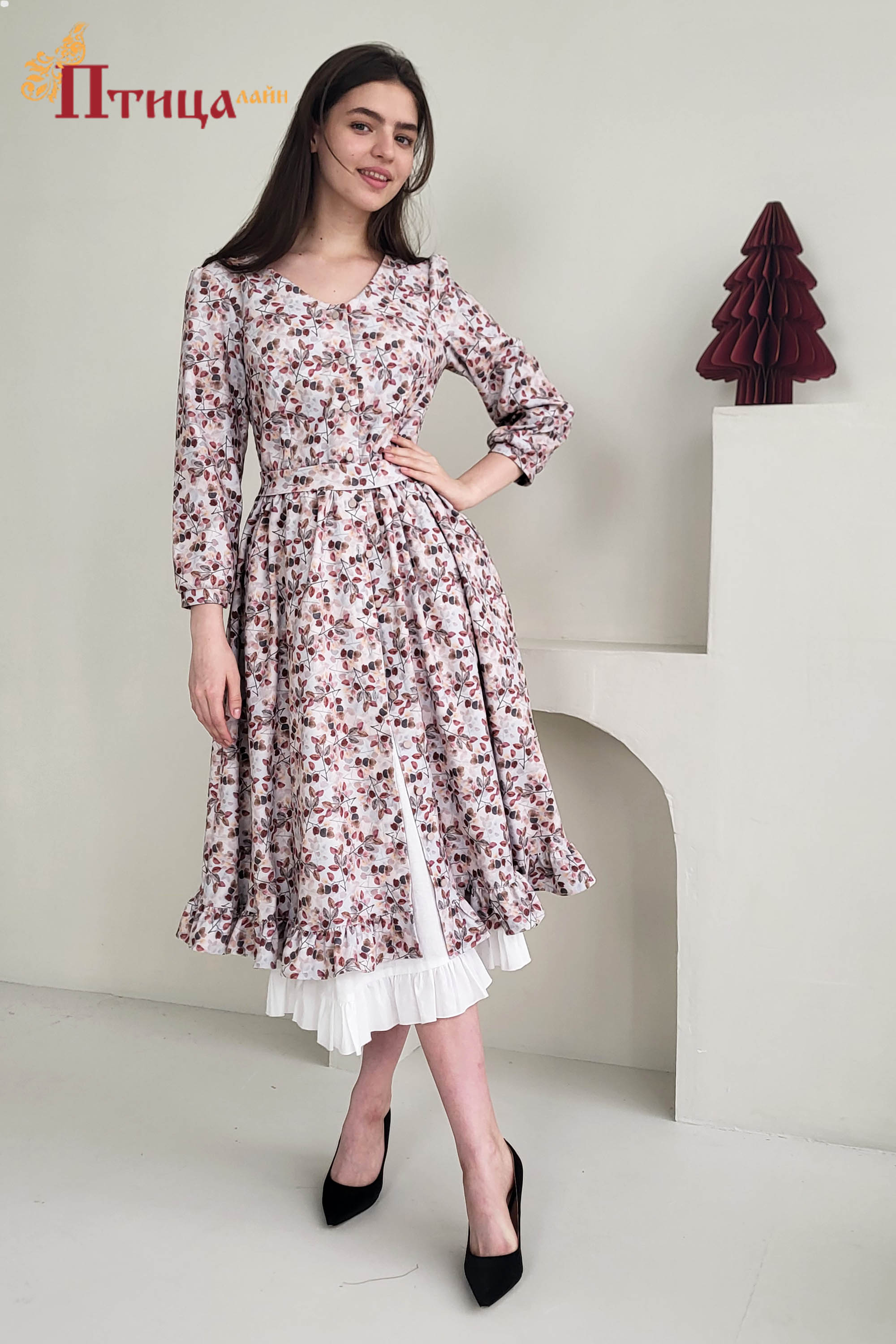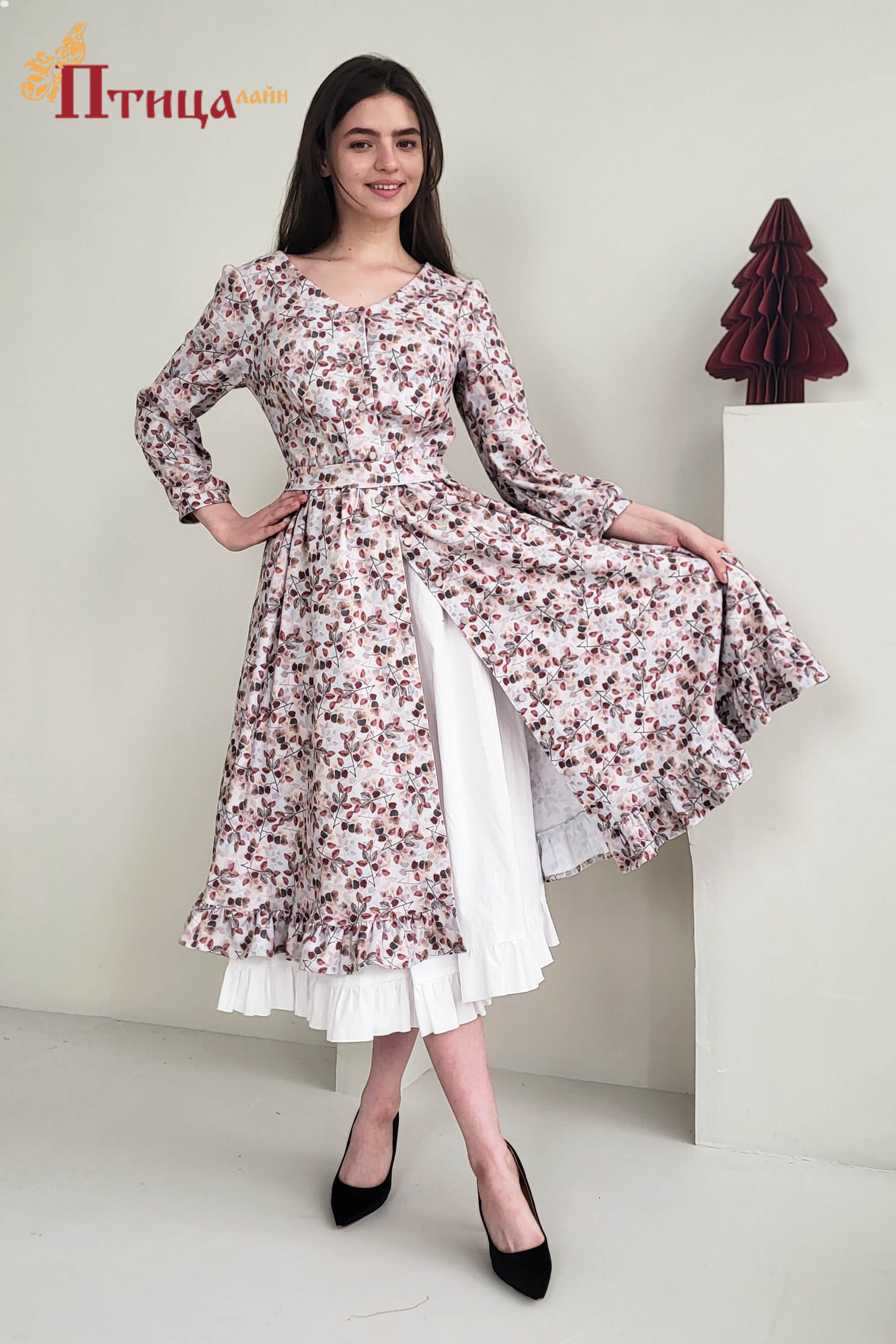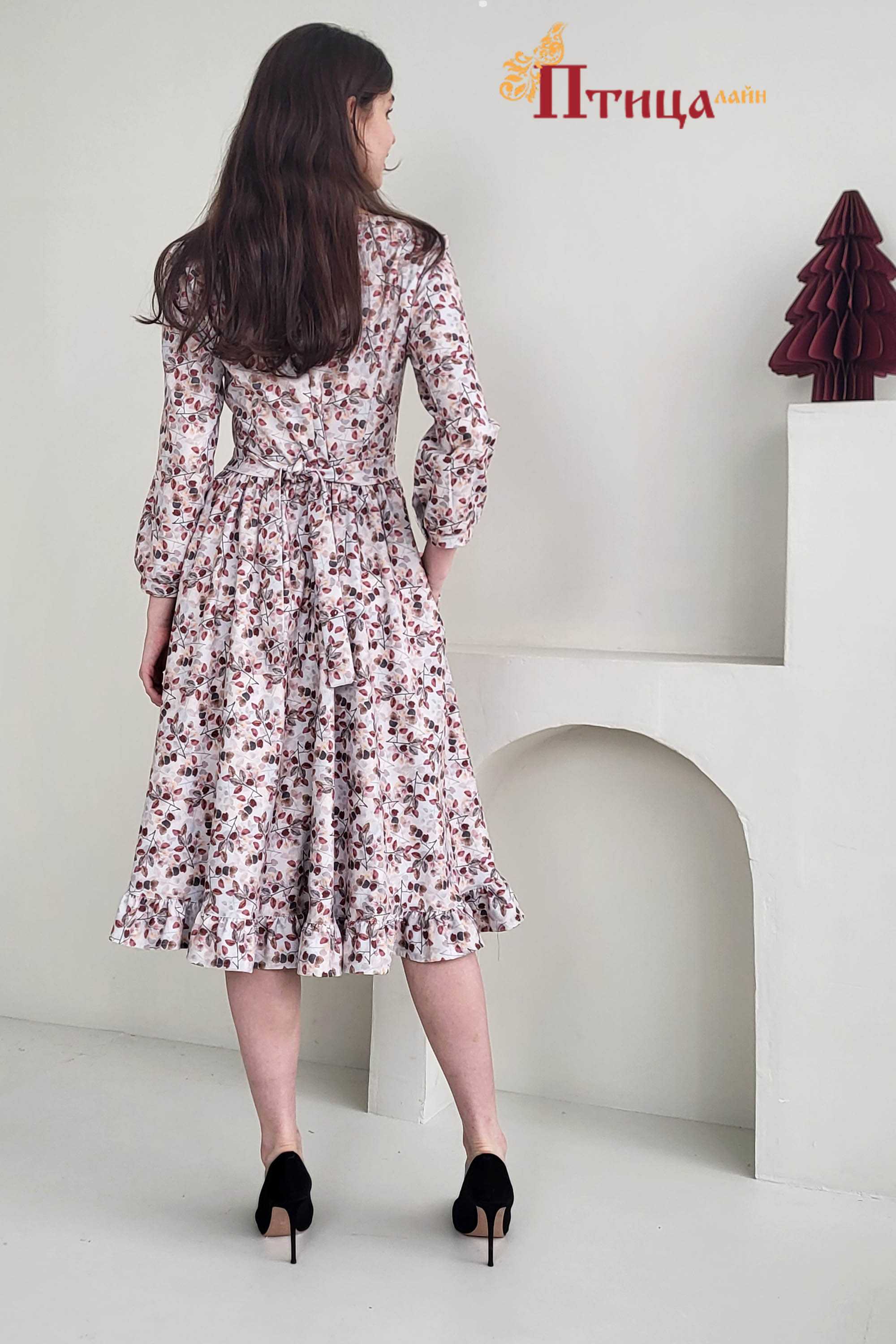 Стильное дизайнерское женское платье-миди в стиле ретро с рукавом 3/4. Спереди застегивается на пуговицы. Базовое повседневное платье, которое можно сочетать с чем угодно. Подходит и для праздников, и для повсе...