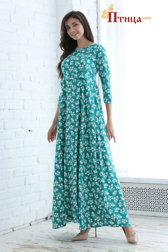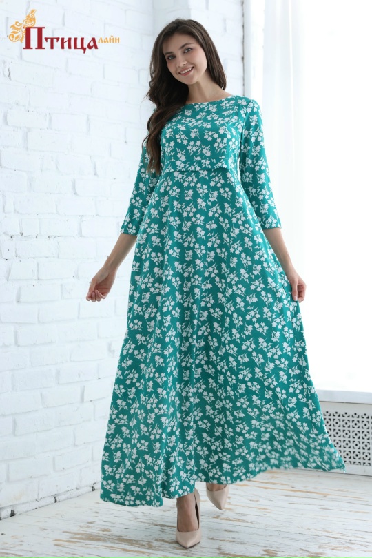 Платье "Муза" отрезное с завышенной линией талии, полуприлегающего силуэта, завышенная линия талии и тонкий втачной поясок, который легко корректирует приталенность модели, подчеркивает женственный силуэт, горловина аккуратная лодочка. Юбка полусолнце с боковыми швами - женственная и очень красивая, в юбке при движении образуется красивая волна по подолу, в ней очень хочется кружиться, наблюдая за тем, как красиво "танцует платье". Рукав втачной прямой длиной 3/4, застежка на «молнию» по спинке.