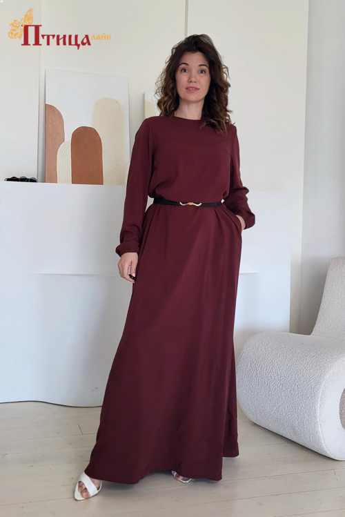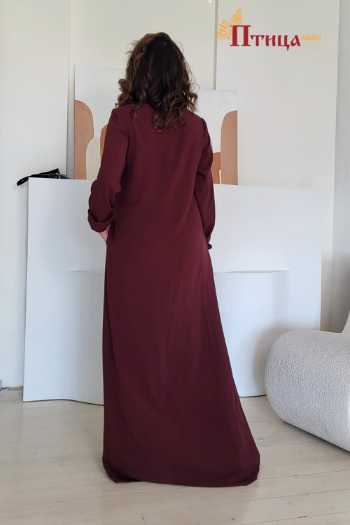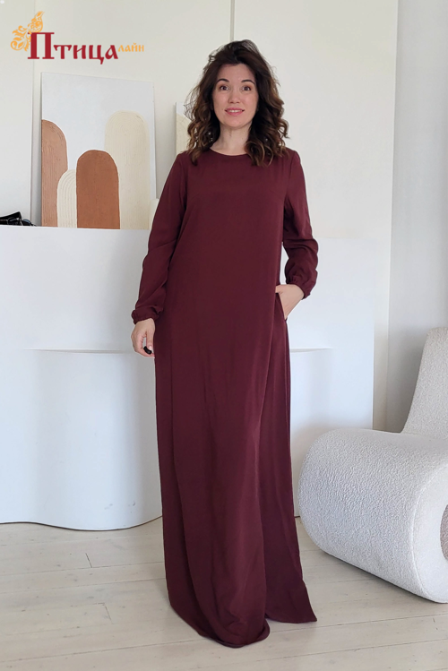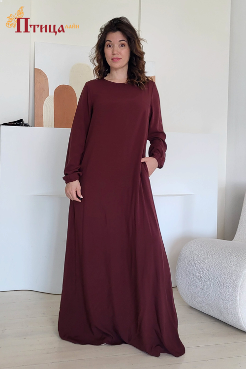 Платье вечернее «Свежий ветер» трапециевидного силуэта с боковыми карманами. Втачной, длинный рукав, прямой, не зауженный на резиночки. Застежка по спинке на пуговицу. Элегантный силуэт. Данное платье прекра...