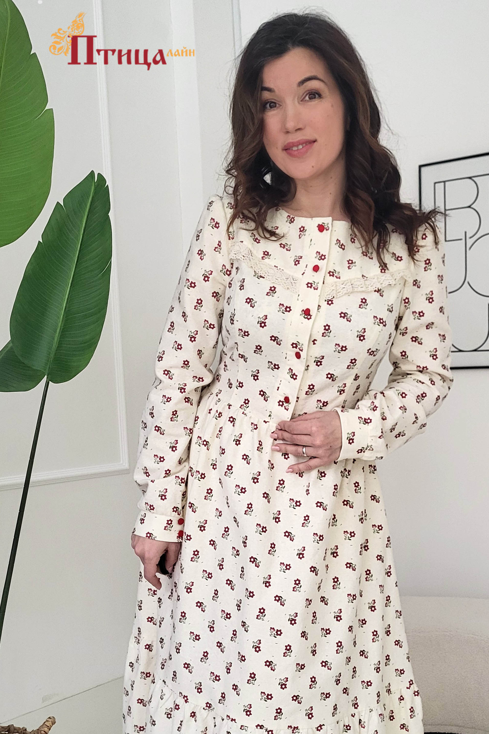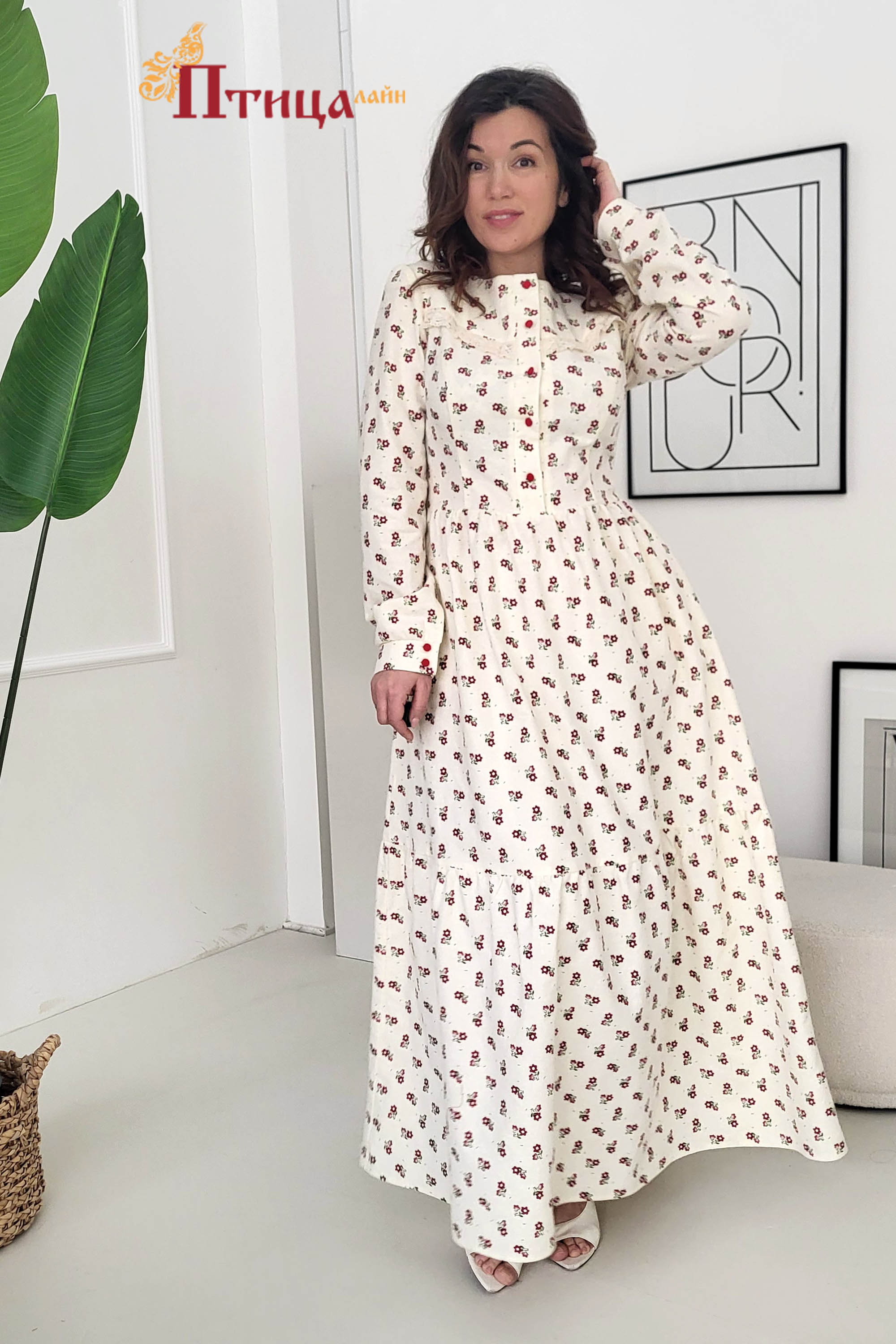 Платье женское отрезное по талии, полуприлегающего силуэта. Юбка расширенная к низу с легкой сборкой по талии, в два яруса на сборку. Рукав втачной, расширенный к низу на широкой манжете. Для удобства по средне...