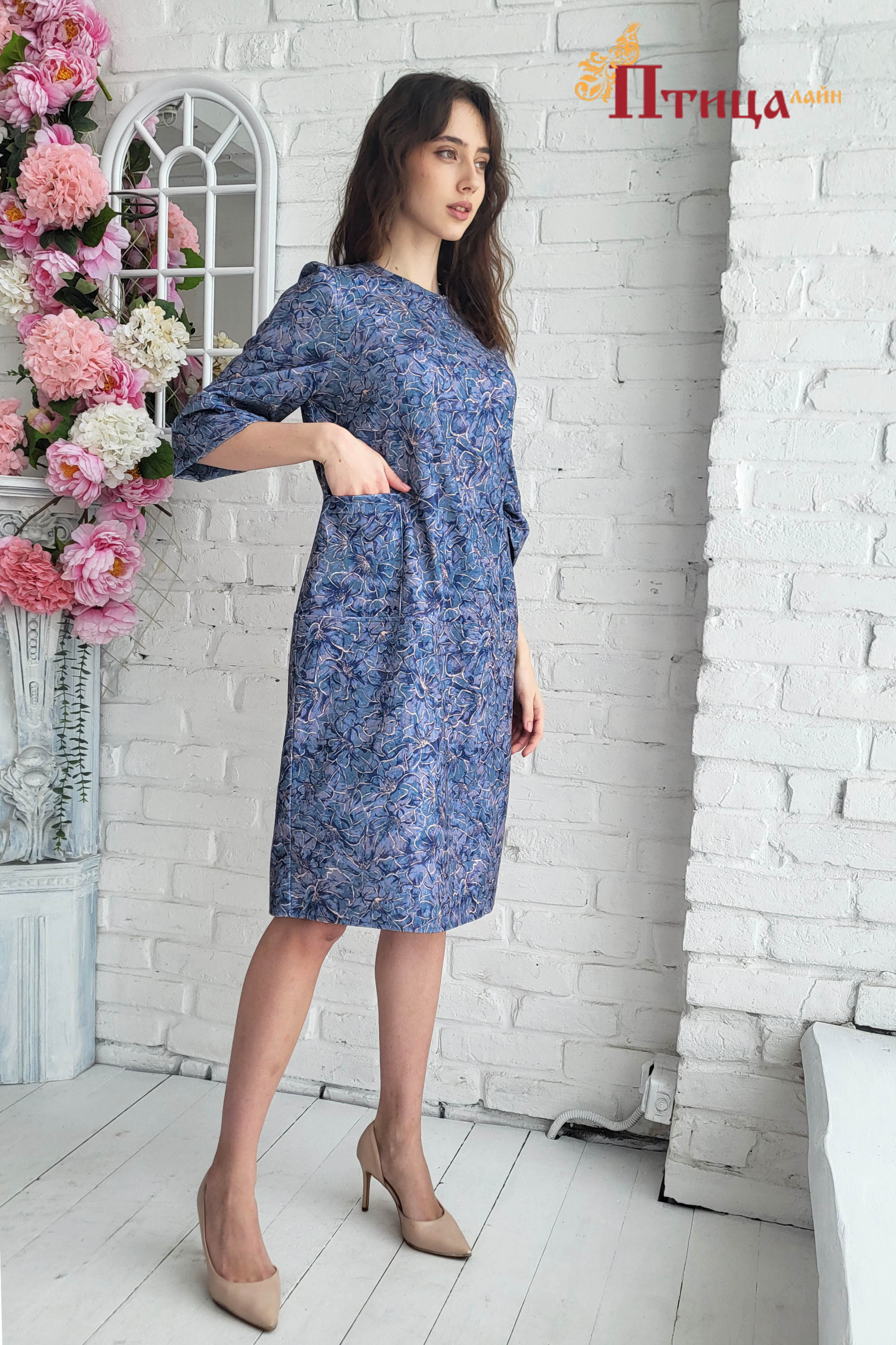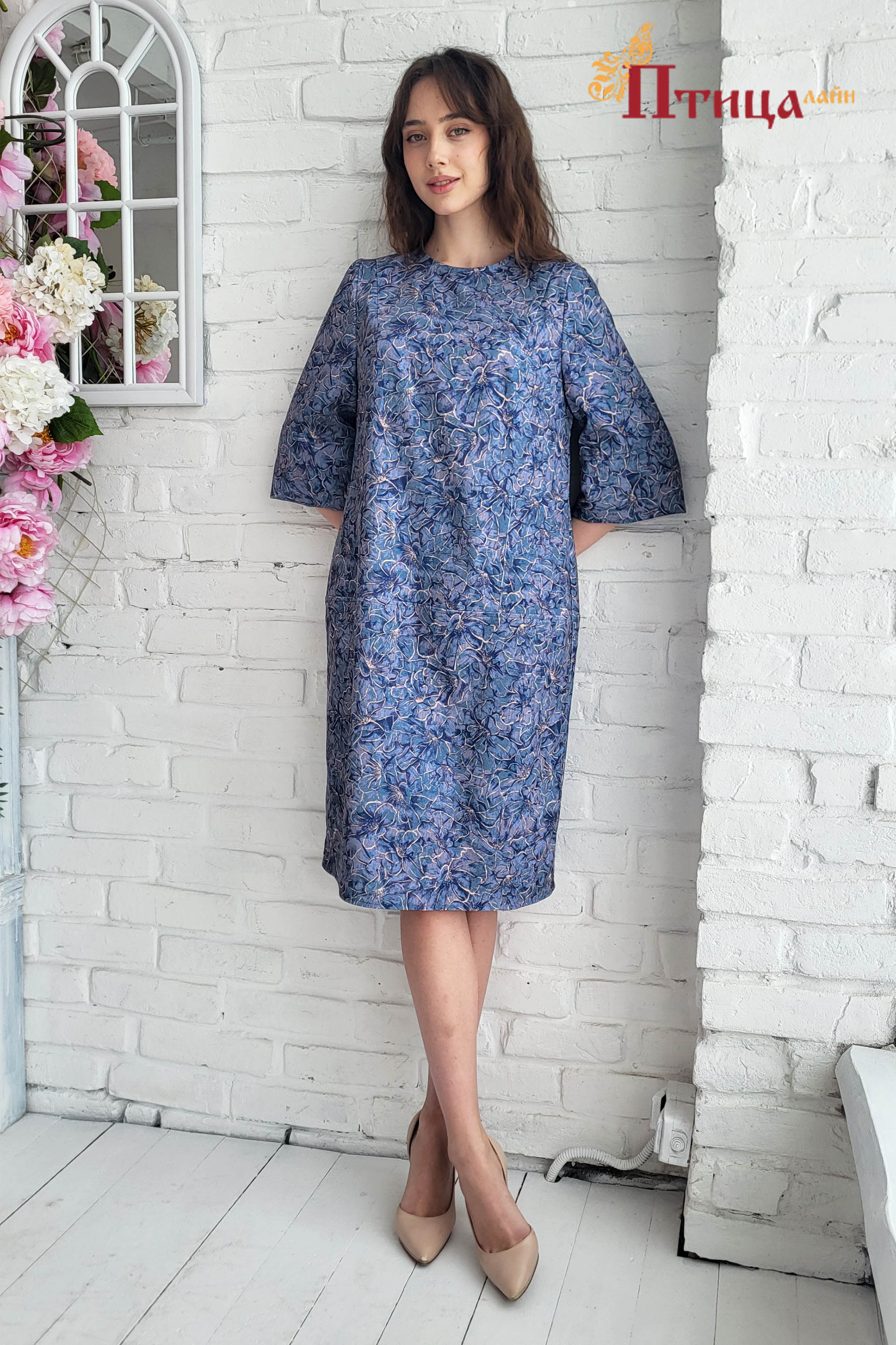 Платье прекрасное сочетание строгости и элегантности. Силуэт прямой, чуть зауженный к низу, прекрасная посадка достигается за счет нагрудной выточки выходящей из плечевого шва. Эфектно смотрится образ за счет г...