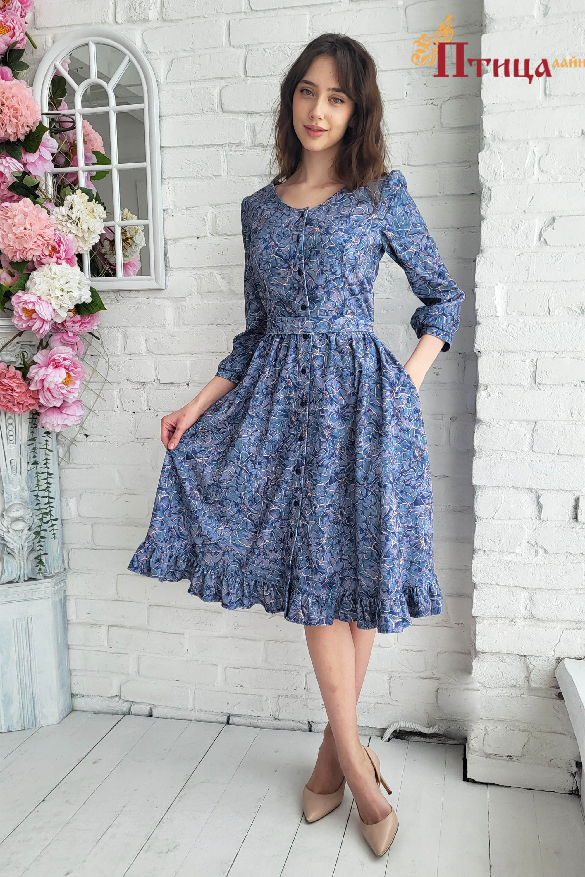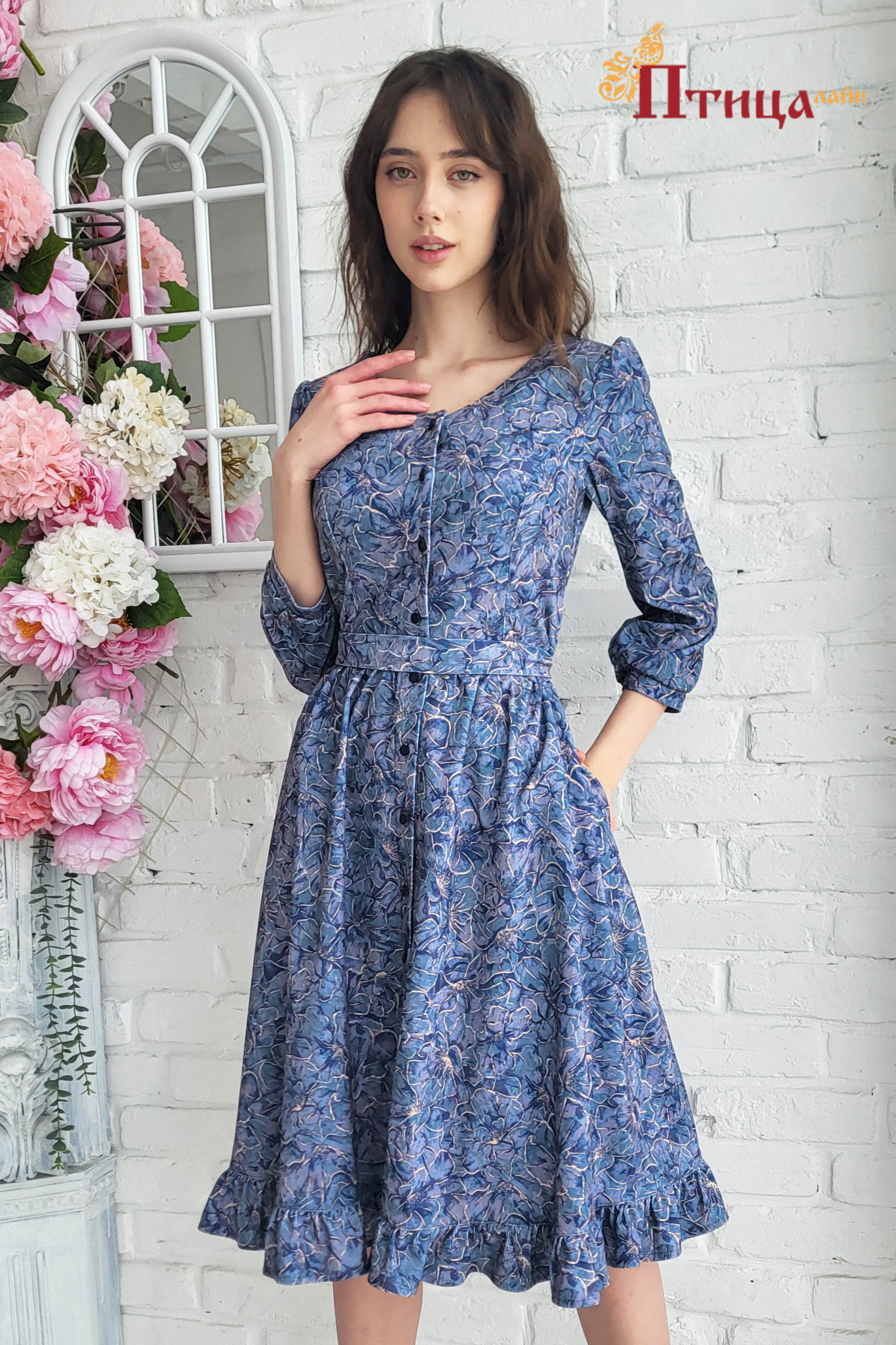 Стильное дизайнерское женское платье-миди в стиле ретро с рукавом 3/4. Спереди застегивается на пуговицы. Базовое повседневное платье, которое можно сочетать с чем угодно. Подходит и для праздников, и для повсе...