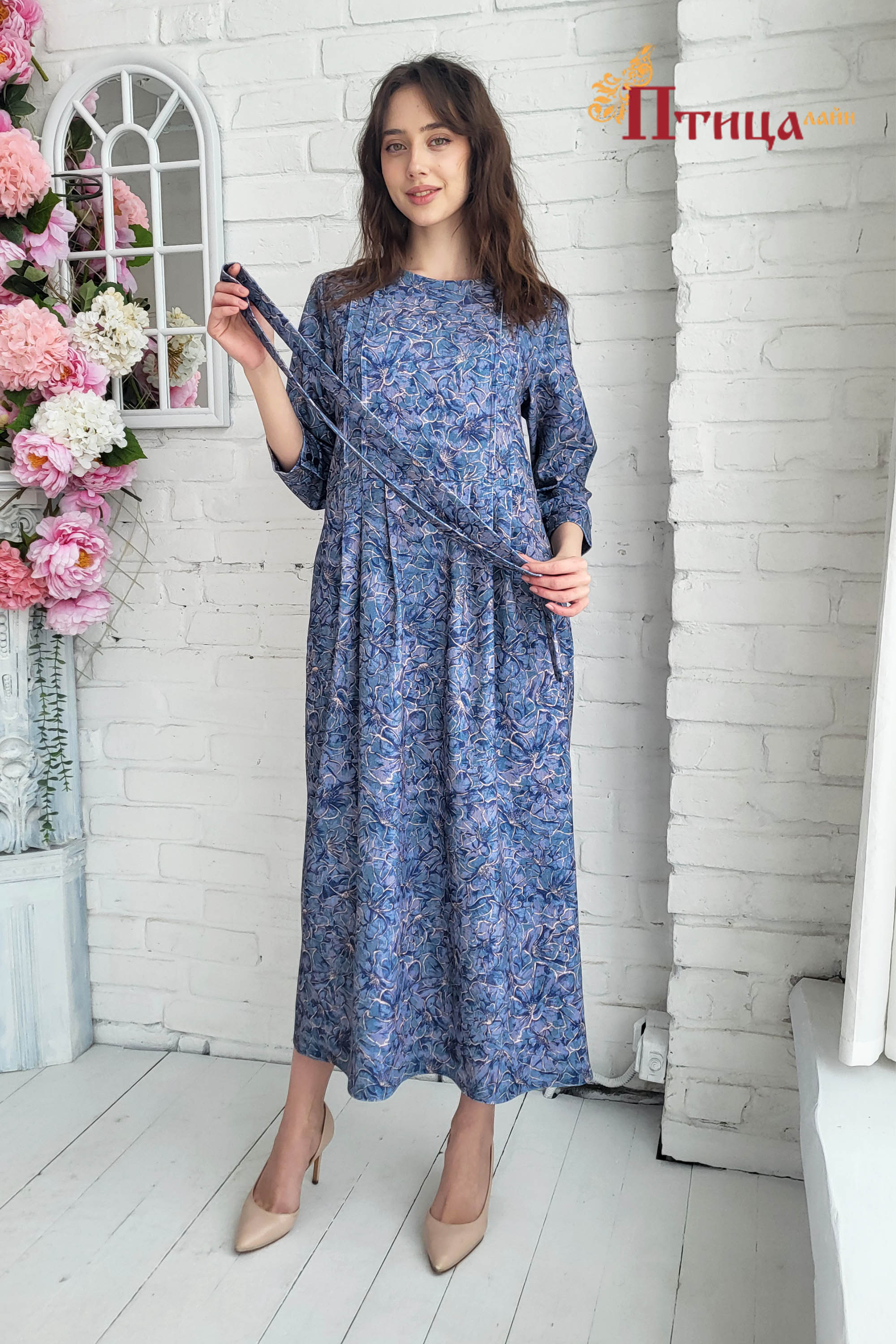 Эффектная модель платья с поясом с чуть завышенной линией талии. Юбка прямая с 6 складками по передней и задней части юбки, юбка имеет хороший шаг. Модель прямого силуэта, застежка по спинке на молнию. Рукав вт...
