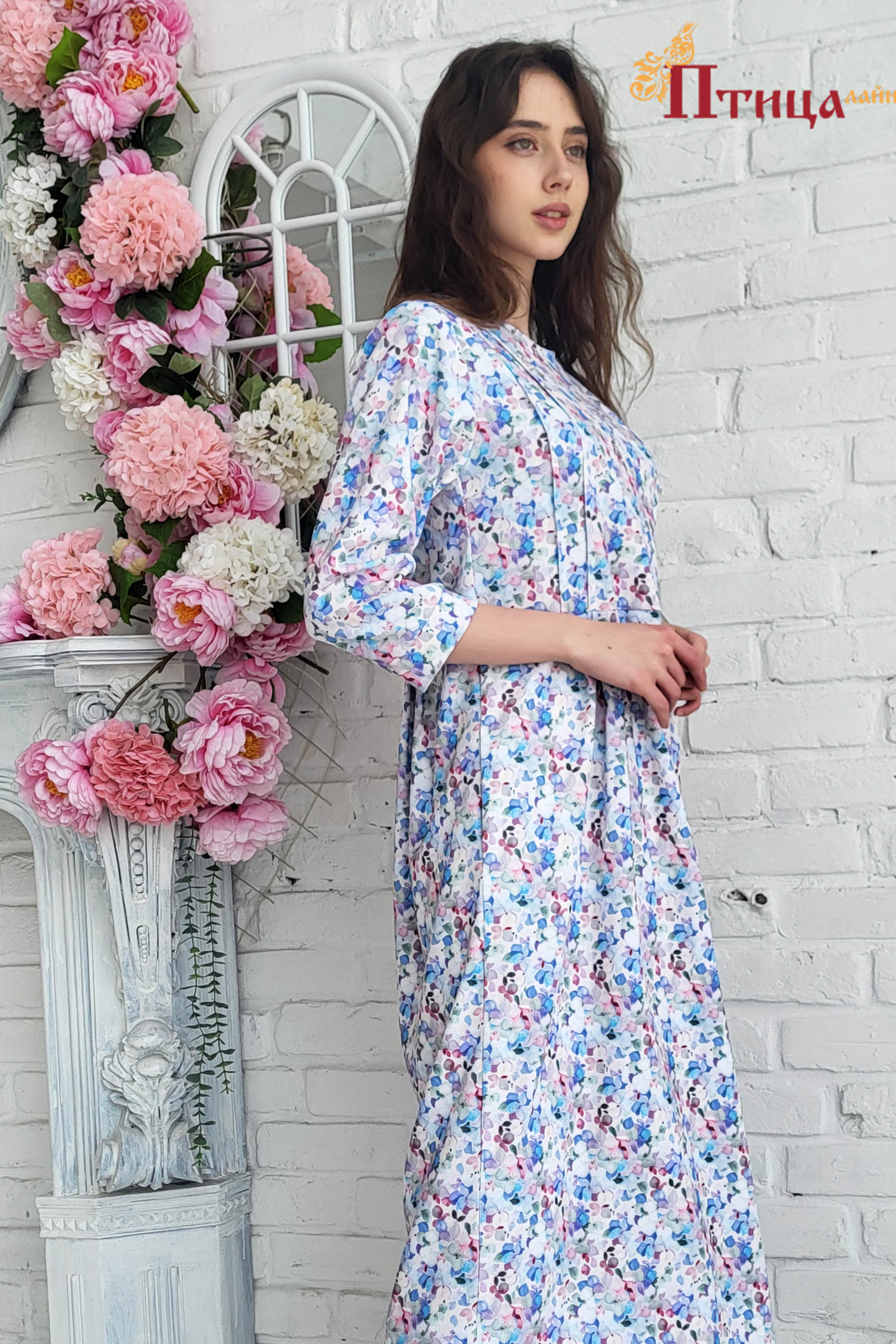 Эффектная модель платья с поясом с чуть завышенной линией талии. Юбка прямая с 6 складками по передней и задней части юбки, юбка имеет хороший шаг. Модель прямого силуэта, застежка по спинке на молнию. Рукав вт...