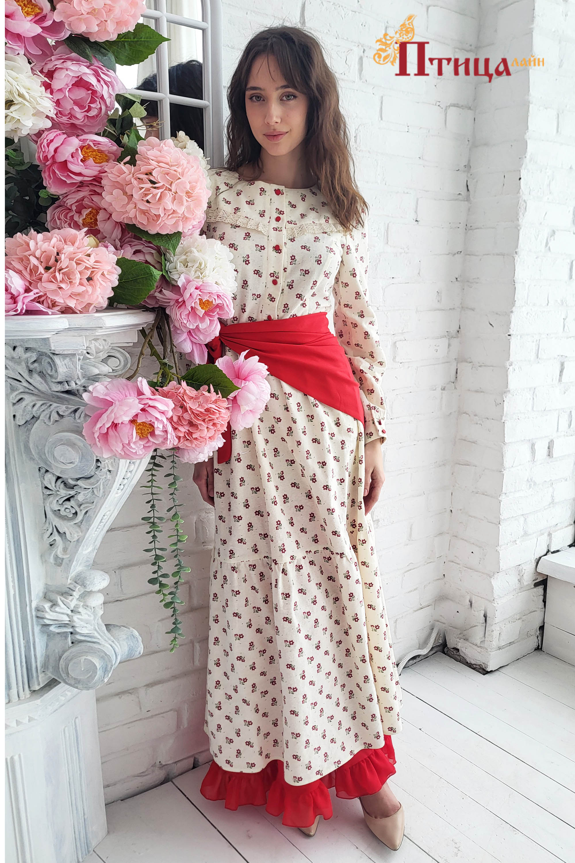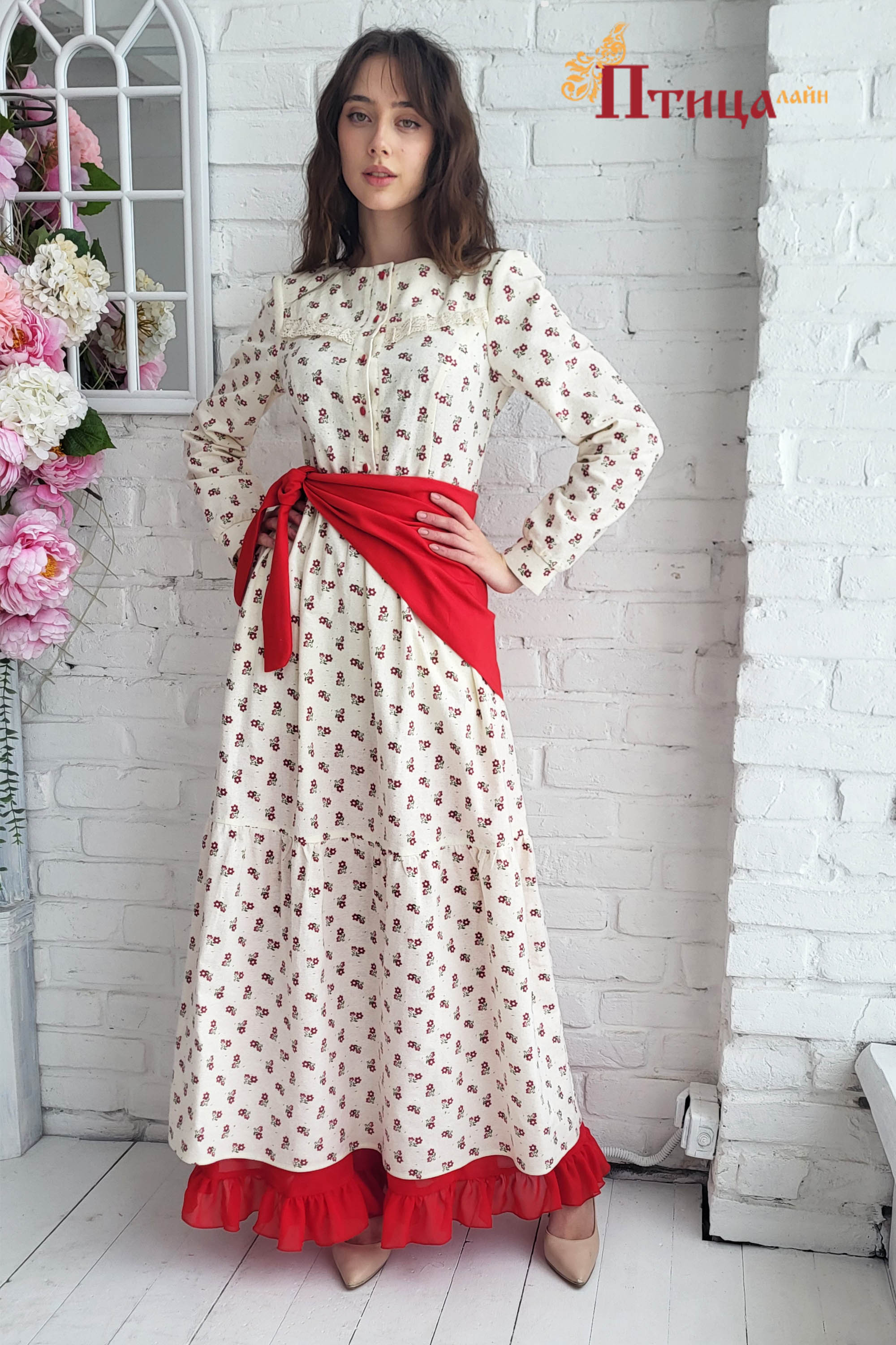 Платье женское отрезное по талии, полуприлегающего силуэта. Юбка расширенная к низу с легкой сборкой по талии, в два яруса на сборку. Рукав втачной, расширенный к низу на широкой манжете. Для удобства по средне...