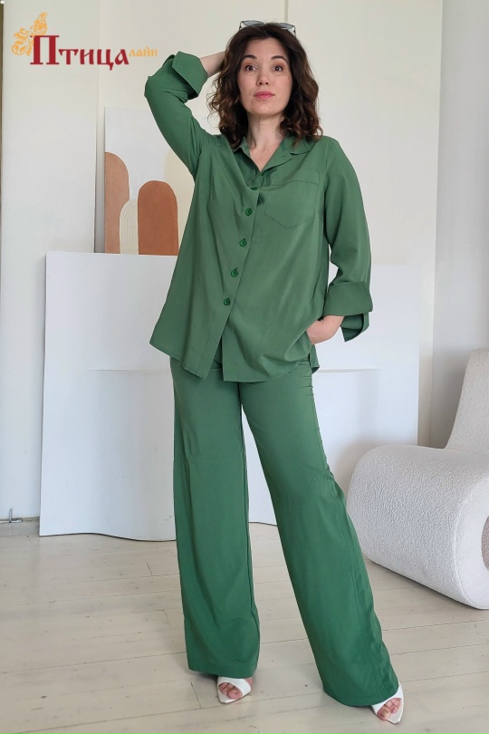 Великолепный костюм выполненный из штапеля. Рубашка свободного кроя. Свободные брюки с карманами и мягкой резинкой на талии. Комплект прекрасно садится по фигуре, но при этом выглядит женственно и эффектно. ...