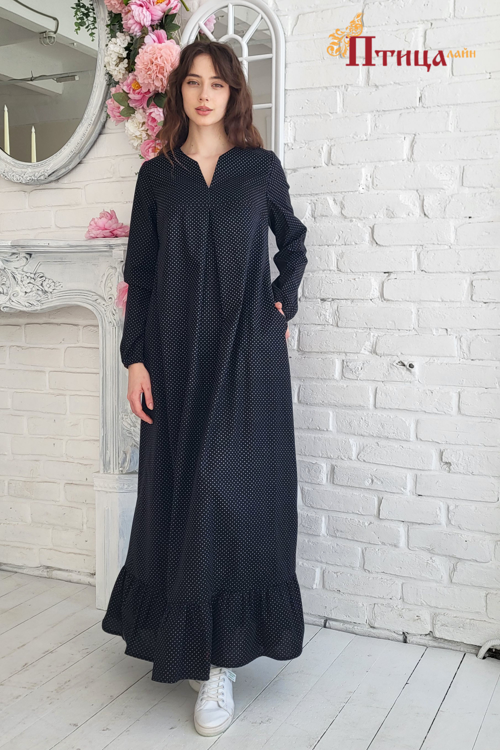 Платье трапециевидного силуэта с V образным вырезом, с боковыми карманами и богатым воланом по низу юбки, динамичный, завораживающий образ. Втачной, длинный рукав, прямой не зауженный на резиночке, позволяет ва...