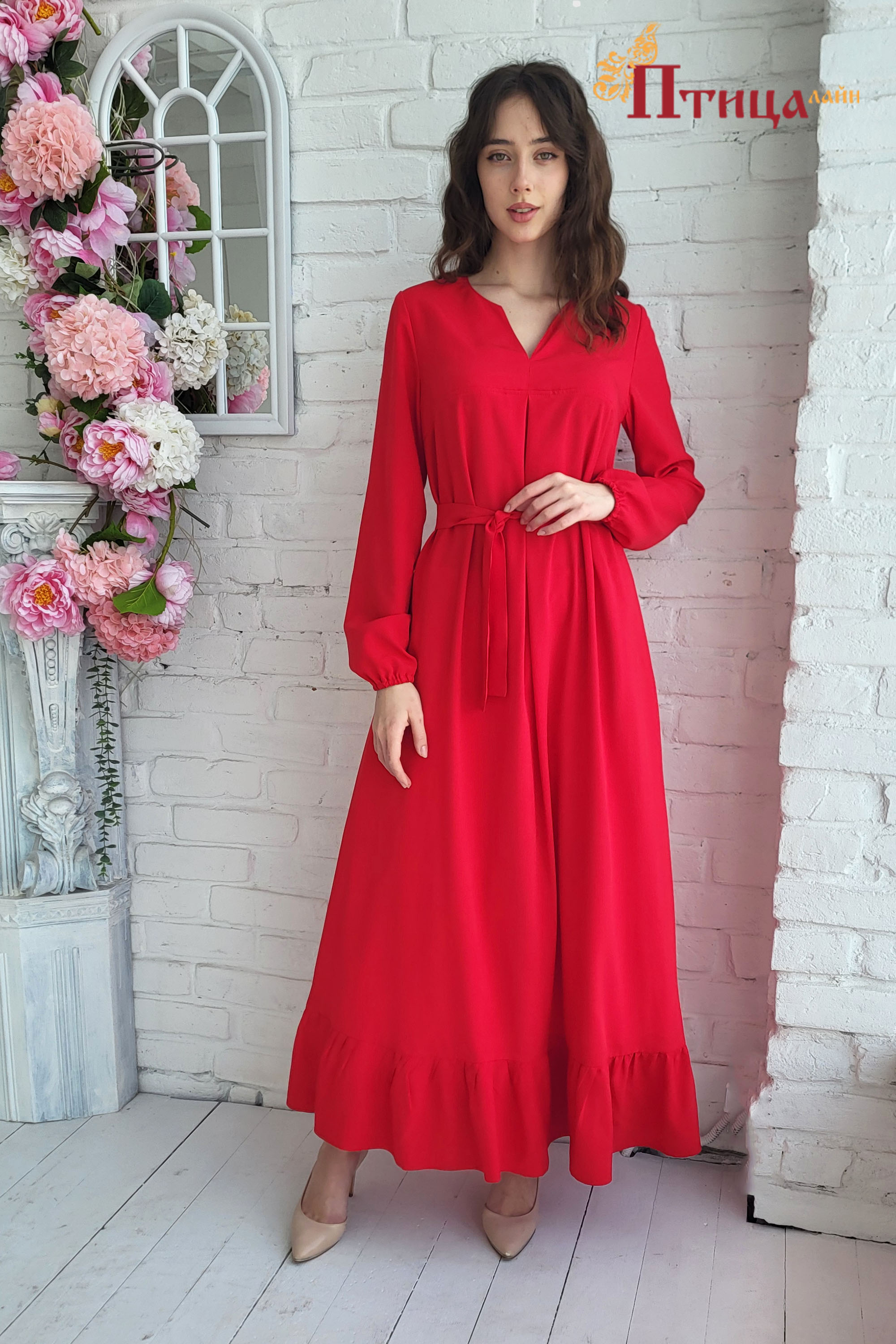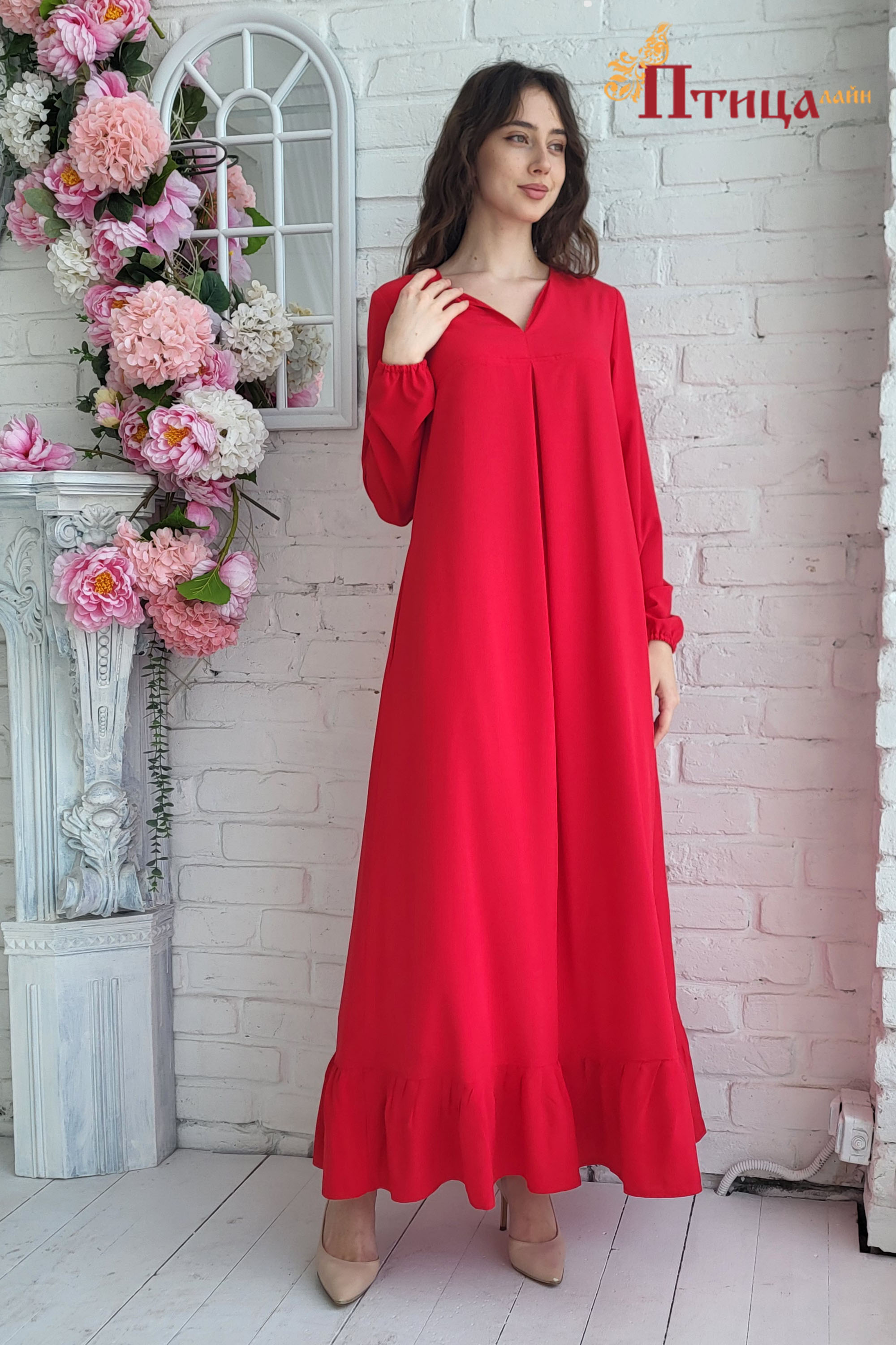 Платье трапециевидного силуэта с V образным вырезом, с боковыми карманами и богатым воланом по низу юбки, динамичный, завораживающий образ. Втачной, длинный рукав, прямой не зауженный на резиночке, позволяет ва...