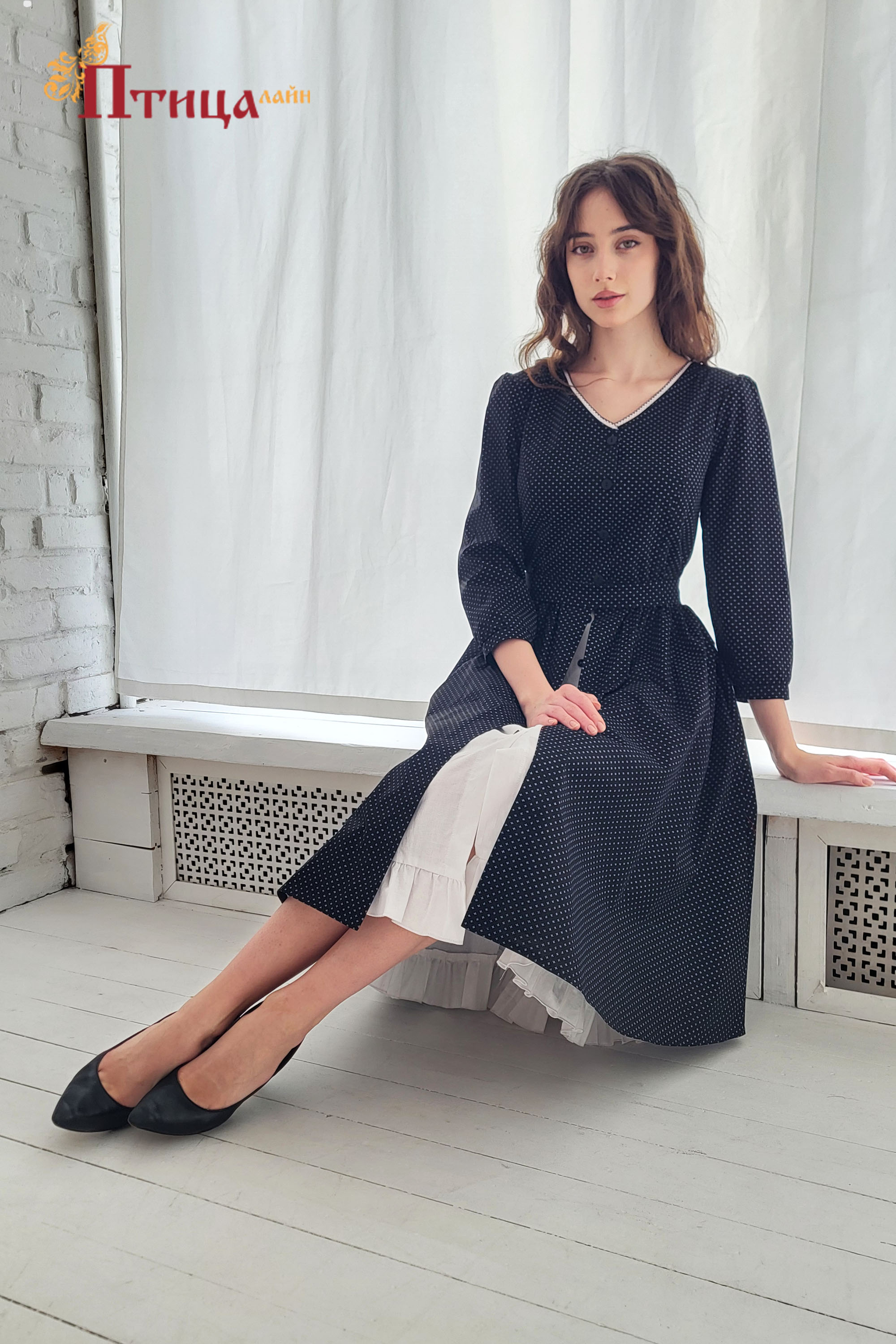 Стильное дизайнерское женское платье миди в стиле ретро из тонкой джинсы с рукавом 3/4. Спереди застегивается на пуговицы. Базовое повседневное платье, которое можно сочетать с чем угодно. Осенью - с кардиганами, жакетами, джинсовками, кедами и грубыми ботинками. В летнюю пору - с сандалями, натуральными украшениями, соломенными сумками. Подходит и для праздников, и для повседневного использования - на прогулку, в кафе, на работу, в офис, на день рождения, на свадьбу, на торжество, на Новый год. Вечернее длинное платье макси в стиле бохо должно быть в гардеробе каждой модной женщины! Станет идеальным подарком для женщины. Наше классическое романтичное платье идеально подходит для мам. Покупатели часто ищут белорусское льняное платье для девушки, но наше красивое платье выполнено из тонкой джинсы, и по всем показателям гораздо лучше. Это натуральная мягкая, нежная, дышащая ткань по составу 100% хлопок.