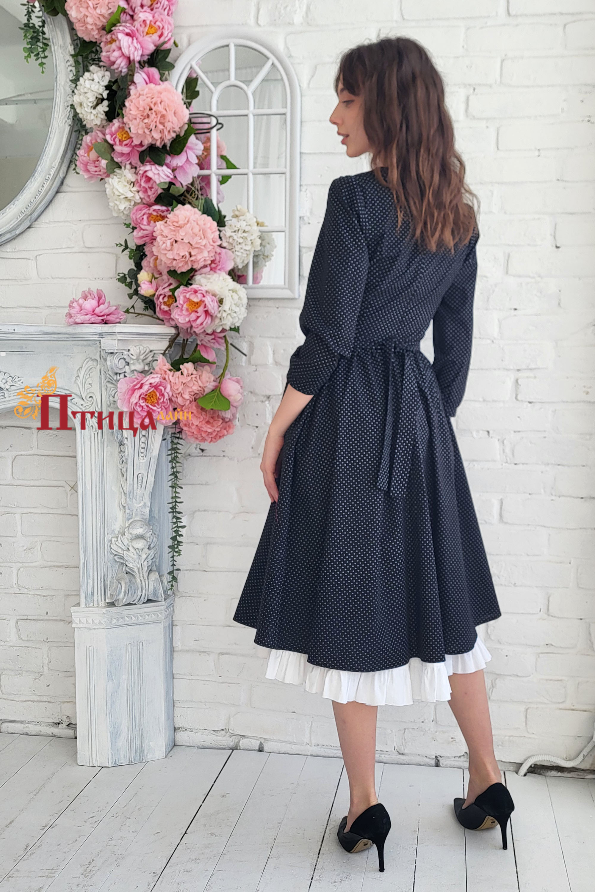 Стильное дизайнерское женское платье миди в стиле ретро из тонкой джинсы с рукавом 3/4. Спереди застегивается на пуговицы. Базовое повседневное платье, которое можно сочетать с чем угодно. Осенью - с кардиганами, жакетами, джинсовками, кедами и грубыми ботинками. В летнюю пору - с сандалями, натуральными украшениями, соломенными сумками. Подходит и для праздников, и для повседневного использования - на прогулку, в кафе, на работу, в офис, на день рождения, на свадьбу, на торжество, на Новый год. Вечернее длинное платье макси в стиле бохо должно быть в гардеробе каждой модной женщины! Станет идеальным подарком для женщины. Наше классическое романтичное платье идеально подходит для мам. Покупатели часто ищут белорусское льняное платье для девушки, но наше красивое платье выполнено из тонкой джинсы, и по всем показателям гораздо лучше. Это натуральная мягкая, нежная, дышащая ткань по составу 100% хлопок.