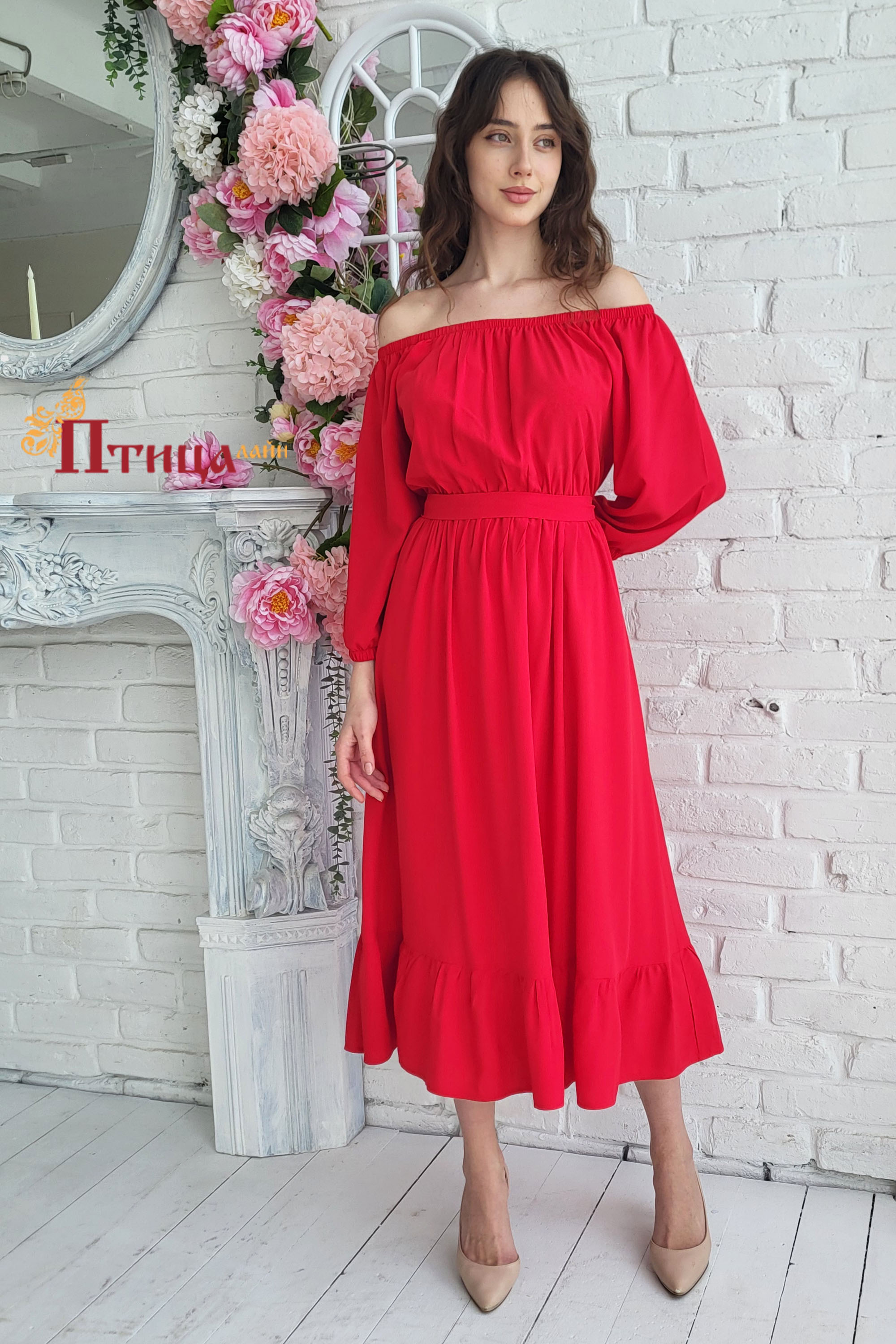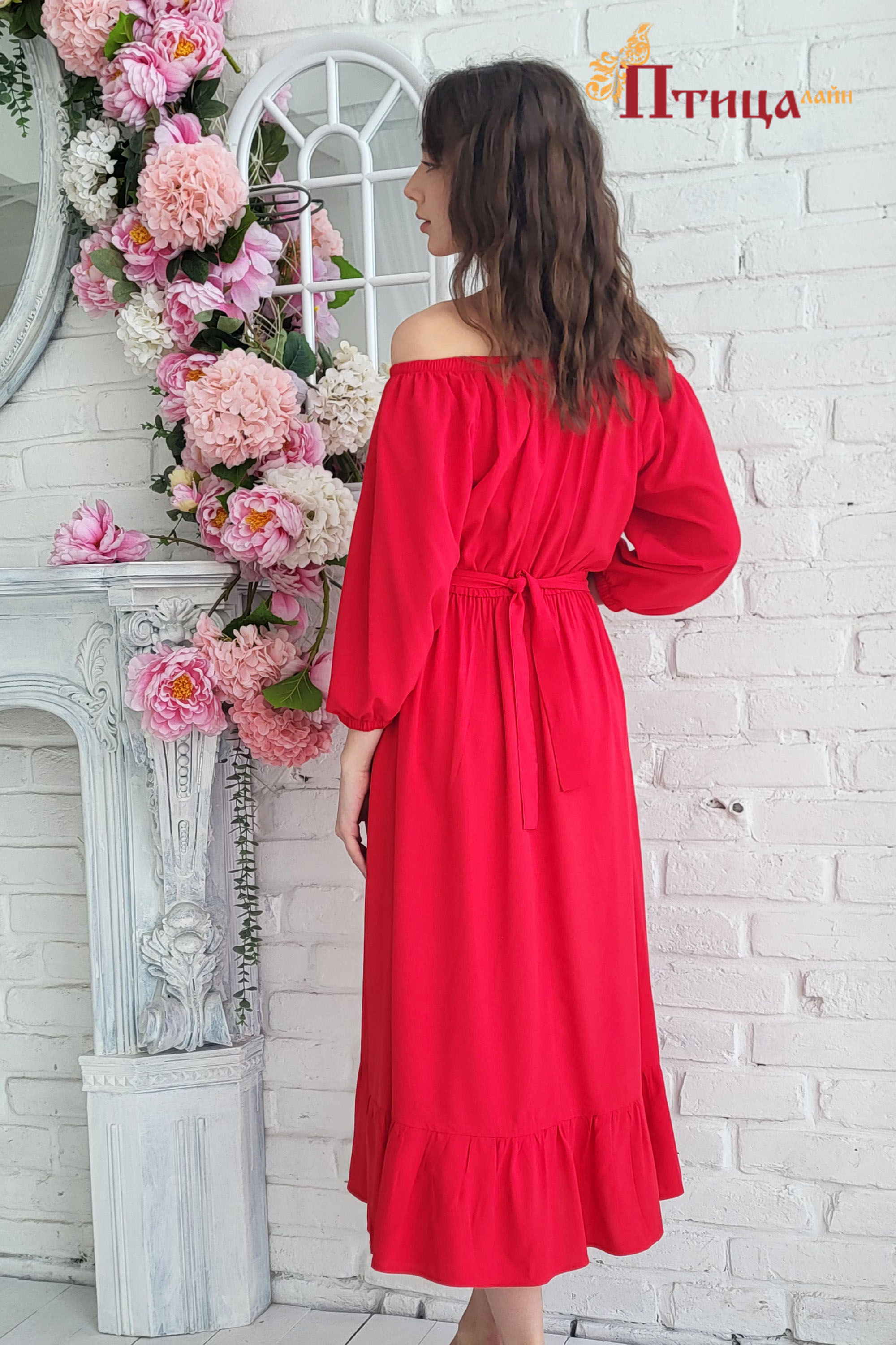 Необыкновенной красоты платье с открытой линией плеча. Данный образ напоминает о море, солнце, летних теплых деньках, вечерних прогулках. Платье отрезное по талии, сборка на эластичную ленту по линии горлови...