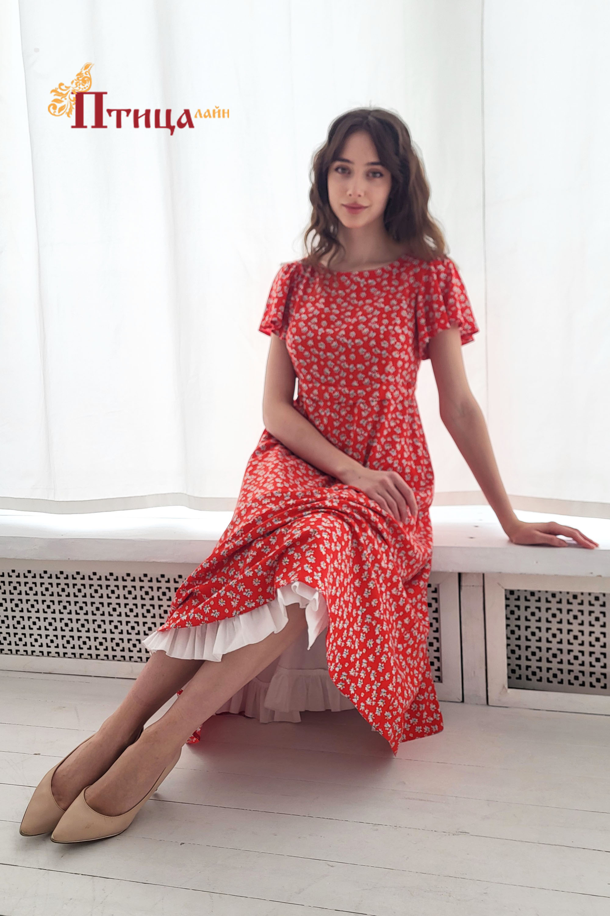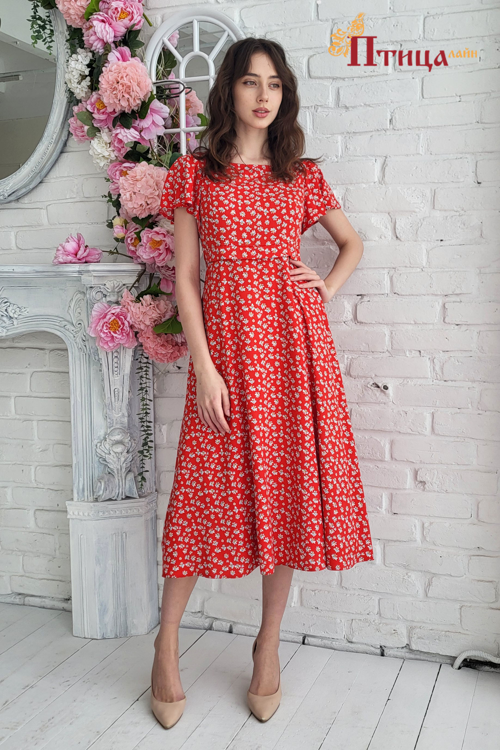 Платье отрезное с завышенной линией талии, полуприлегающего силуэта, линия талии и тонкий поясок, который легко корректирует приталенность модели, подчеркивает женственный силуэт, горловина аккуратная лодочка...