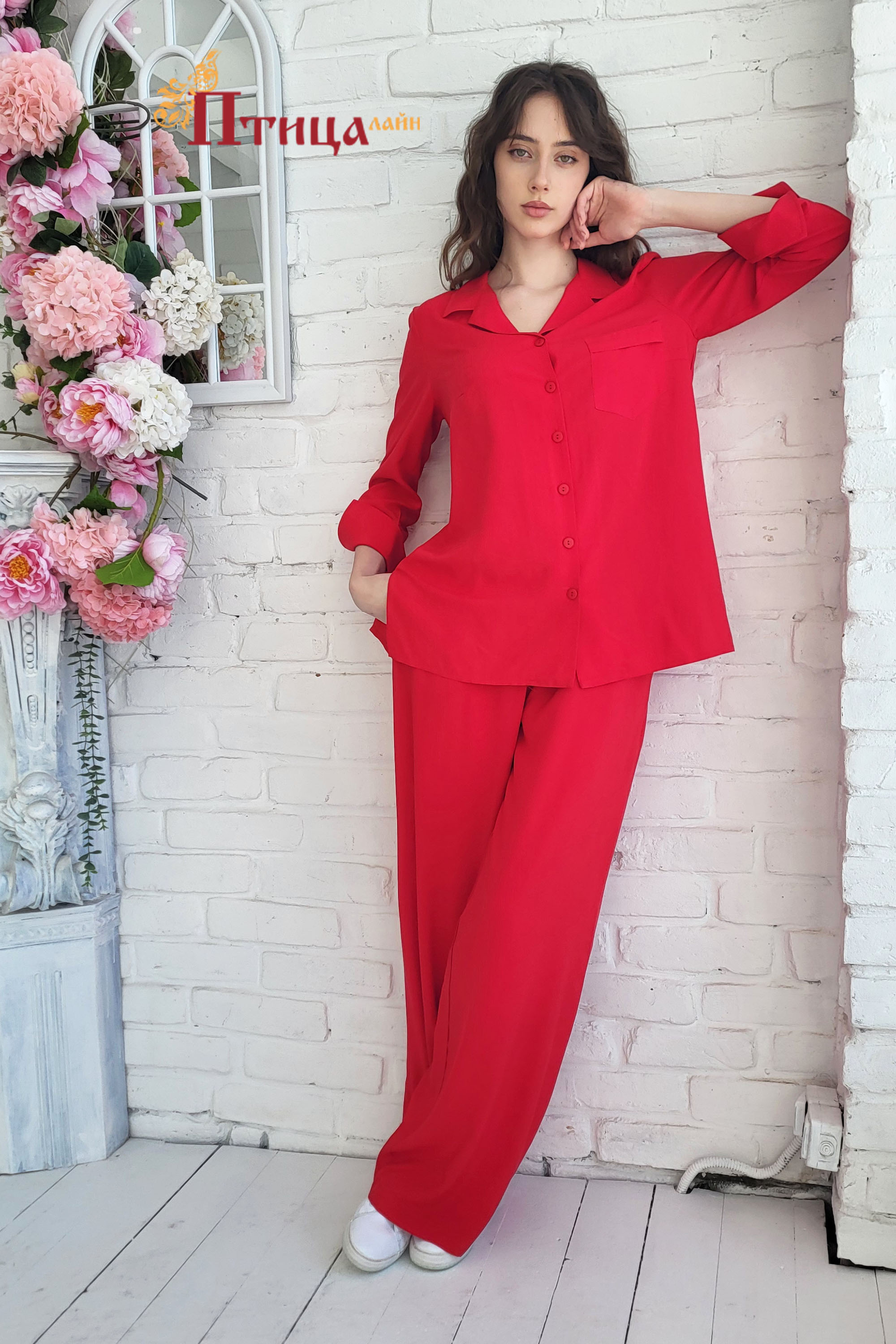 Великолепный костюм выполненный из штапеля. Рубашка свободного кроя. Свободные брюки с карманами и мягкой резинкой на талии. Комплект прекрасно садится по фигуре, но при этом выглядит женственно и эффектно. ...