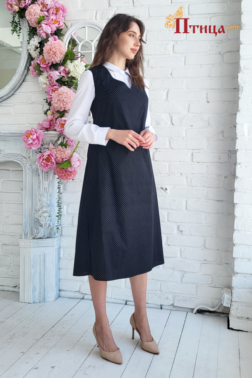Сарафан трапециевидного силуэта , любимая модель наших клиентов. Данная модель прекрасно подходит на каждый день, комфортная пройма. Застежка по спинке на пуговку. Карманы в боковом шве. Данный сарафан прекрас...