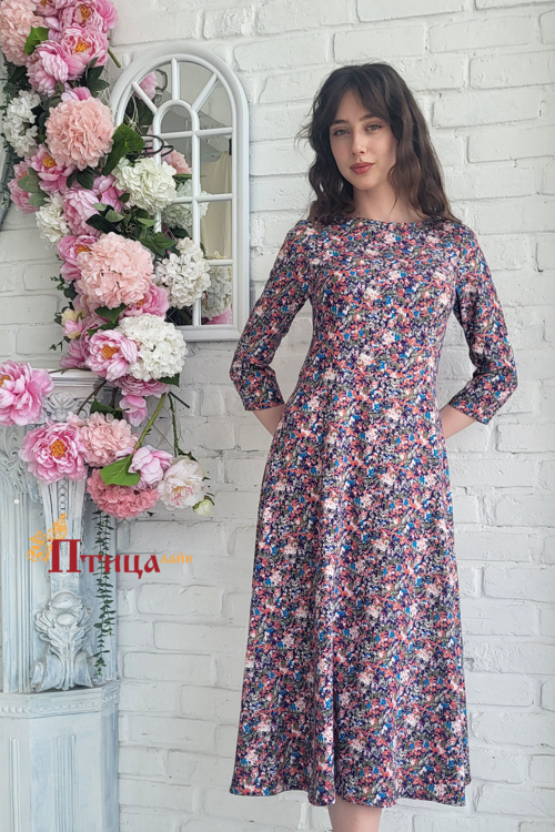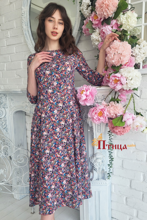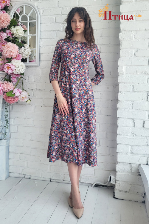 Романтичный образ: платье приталенного силуэта, с отрезной линией талии. Женственный силуэт достигается за счет рельефов по полочки и спинки, рукав зауженный длиной 3/4. Необыкновенной красоты юбка, с легкой сб...