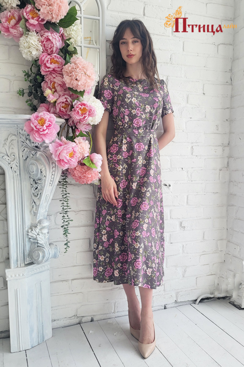 Романтичный, нежный образ: платье приталенного силуэта, с отрезной линией талии. Женственный силуэт достигается за счет рельефов по полочки и спинки. Необыкновенной красоты юбка, с легкой сборочкой по линии тал...