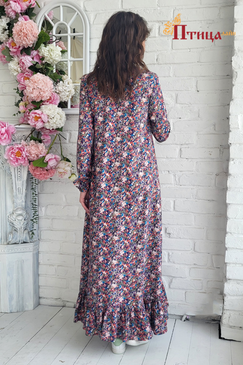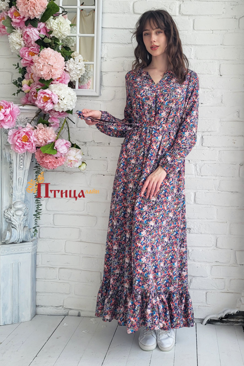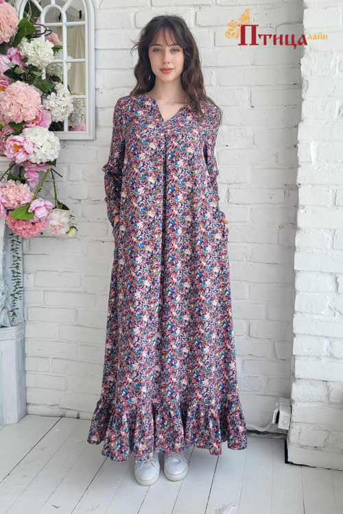 Платье трапециевидного силуэта с V образным вырезом, с боковыми карманами и богатым воланом по низу юбки, динамичный, завораживающий образ. Втачной, длинный рукав, прямой не зауженный на резиночке, позволяет ва...