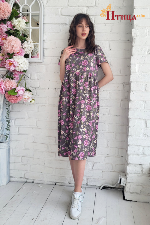 Платье женское отрезное с завышенной линией талии, линия талии по полочке находится под грудью, а по спинке на уровне талии, переход плавный и очень эффектный. Юбка прямая с карманами в боковом шве, равномерна...