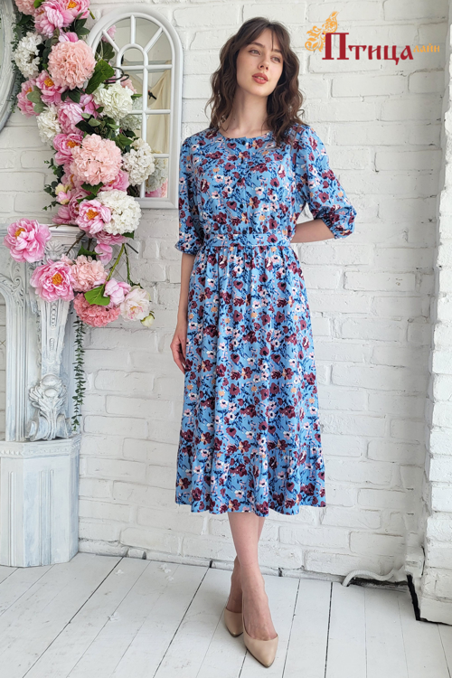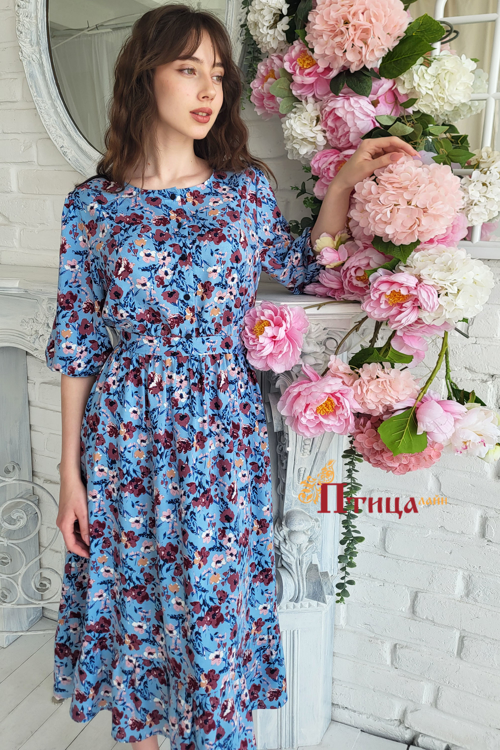 Великолепное платье выполненное с отрезной линией талии собранной на резинку, полуприлегающего силуэта. Юбка с боковыми карманами и сборкой по линии талии. Удобство и комфорт движения обеспечивает хорошее раск...