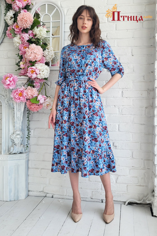 Великолепное платье выполненное с отрезной линией талии собранной на резинку, полуприлегающего силуэта. Юбка с боковыми карманами и сборкой по линии талии. Удобство и комфорт движения обеспечивает хорошее раск...