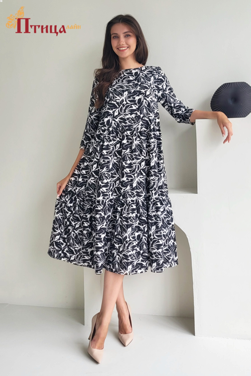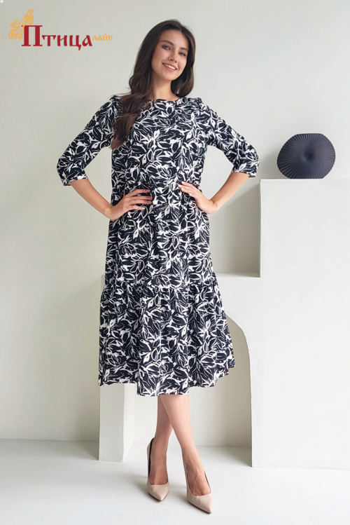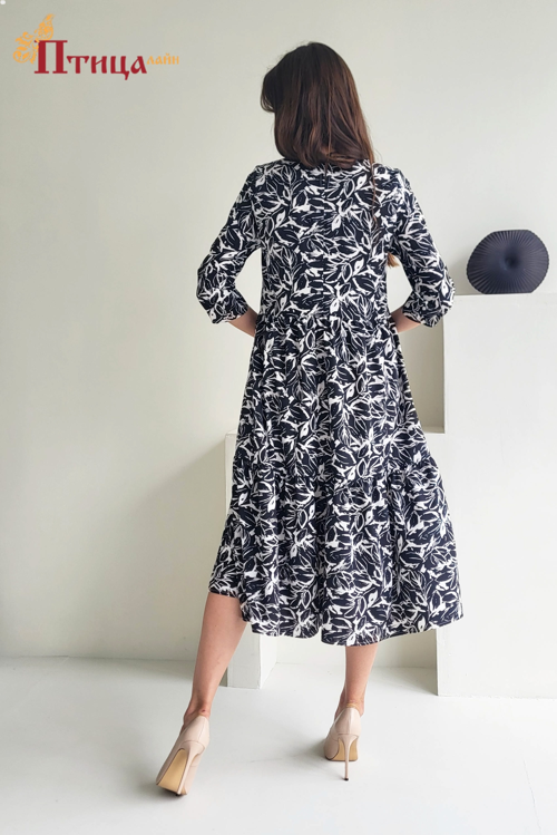 Женственное платье, выполненное из нежнейшей плательной ткани, с роскошной ярусной юбкой, отрезное с завышенной линией талии. Равномерная сборка по двум ярусам украшает данный лаконичный образ. Рукав втачной, в...