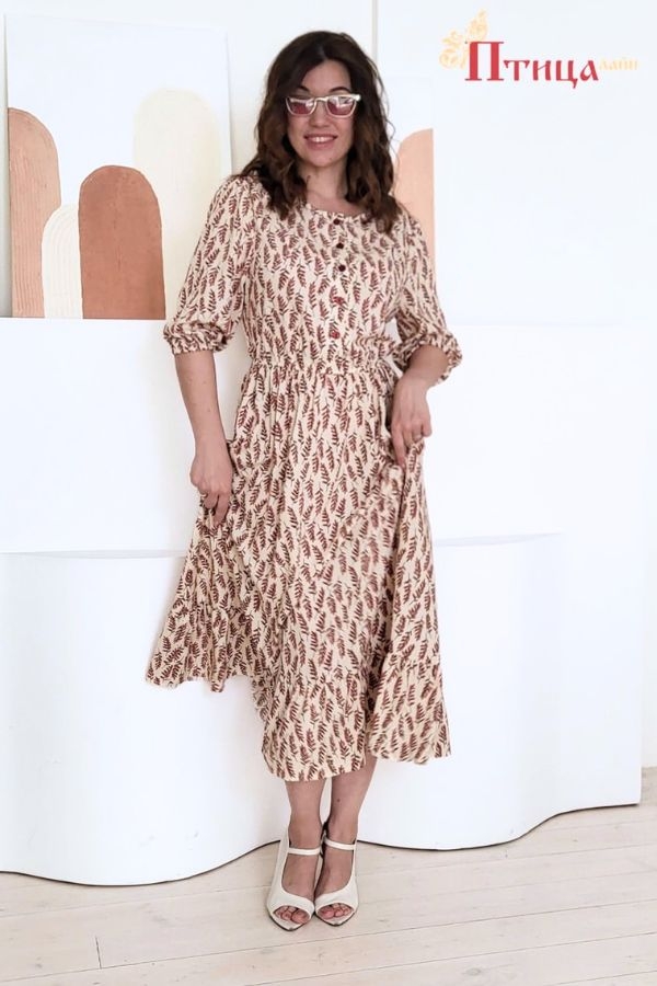 Великолепное платье с отрезной линией талии, собранной на резинку, полуприлегающего силуэта. Юбка дополнена боковыми карманами и сборкой по талии. Комфорт и свободу движений обеспечивает удачное расклешение юб...